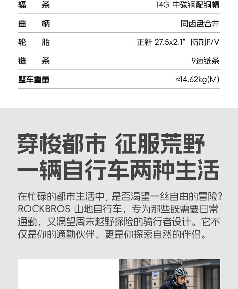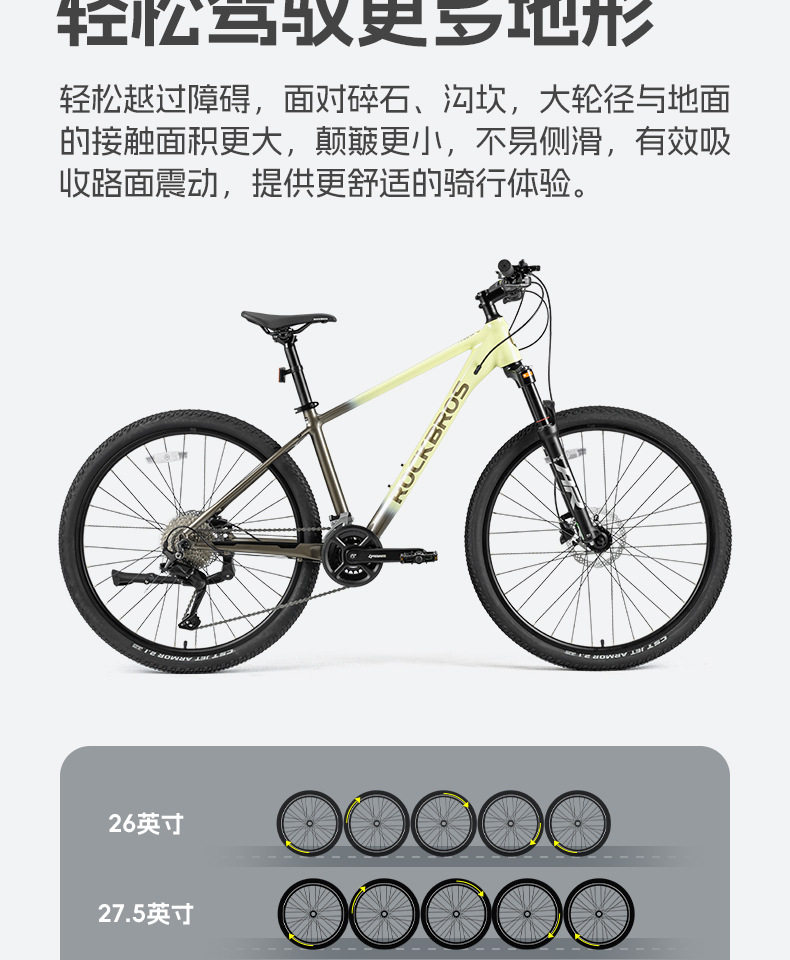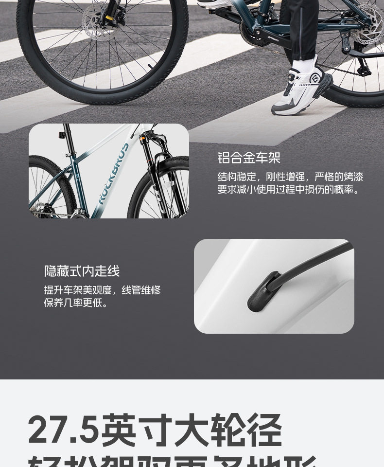 洛克兄弟铝合金山地自行车男女款成人学生通勤碟刹变速单车27.5寸