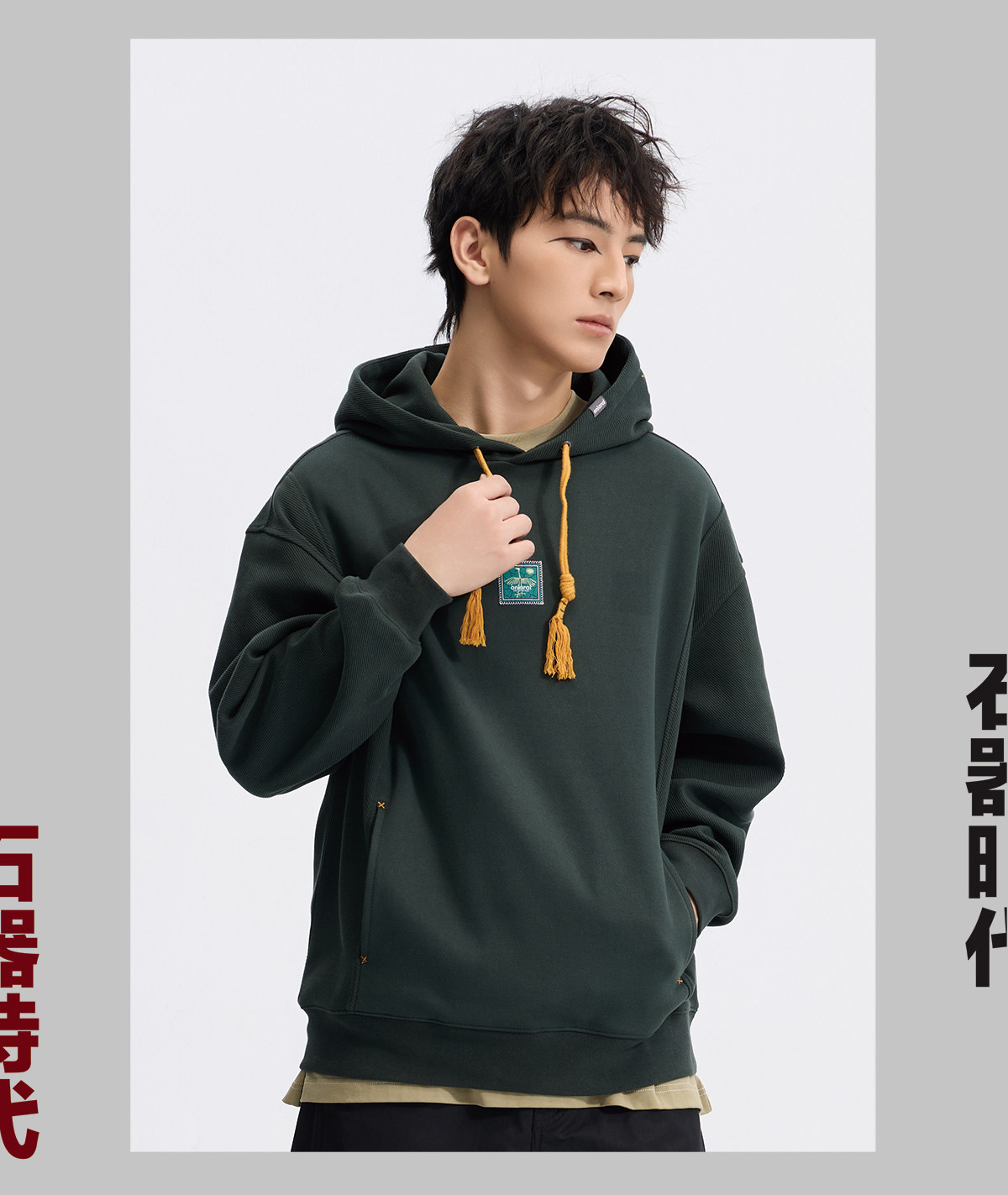 ONIARAI/鬼洗26春季新品黑标石器时代蜂迹拼接连帽卫衣男 A240025