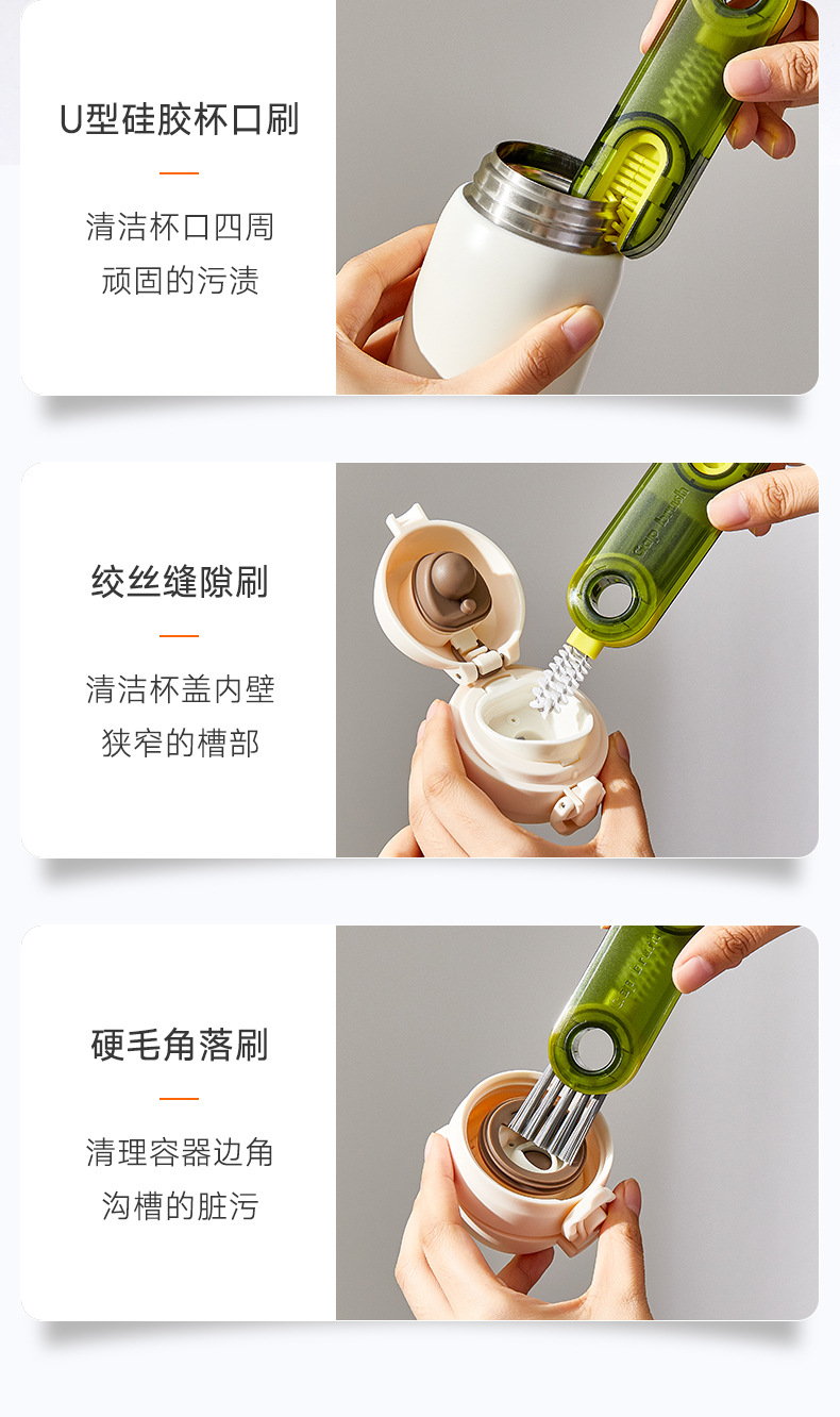 「抖音同款!9.9元3支装」三合一U形杯刷保温杯玻璃杯清洁工具U型缝隙刷婴儿奶瓶盖刷