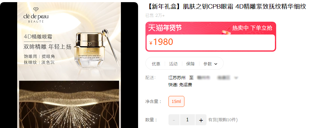 【品名】 CPB/肌肤之钥紧致抚纹精华眼霜2ml