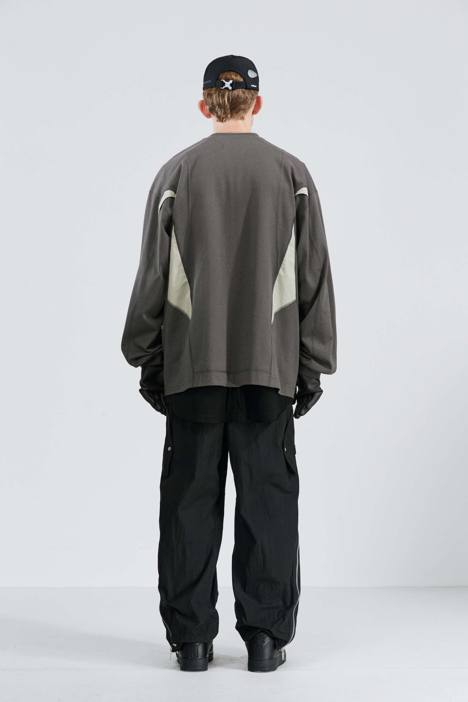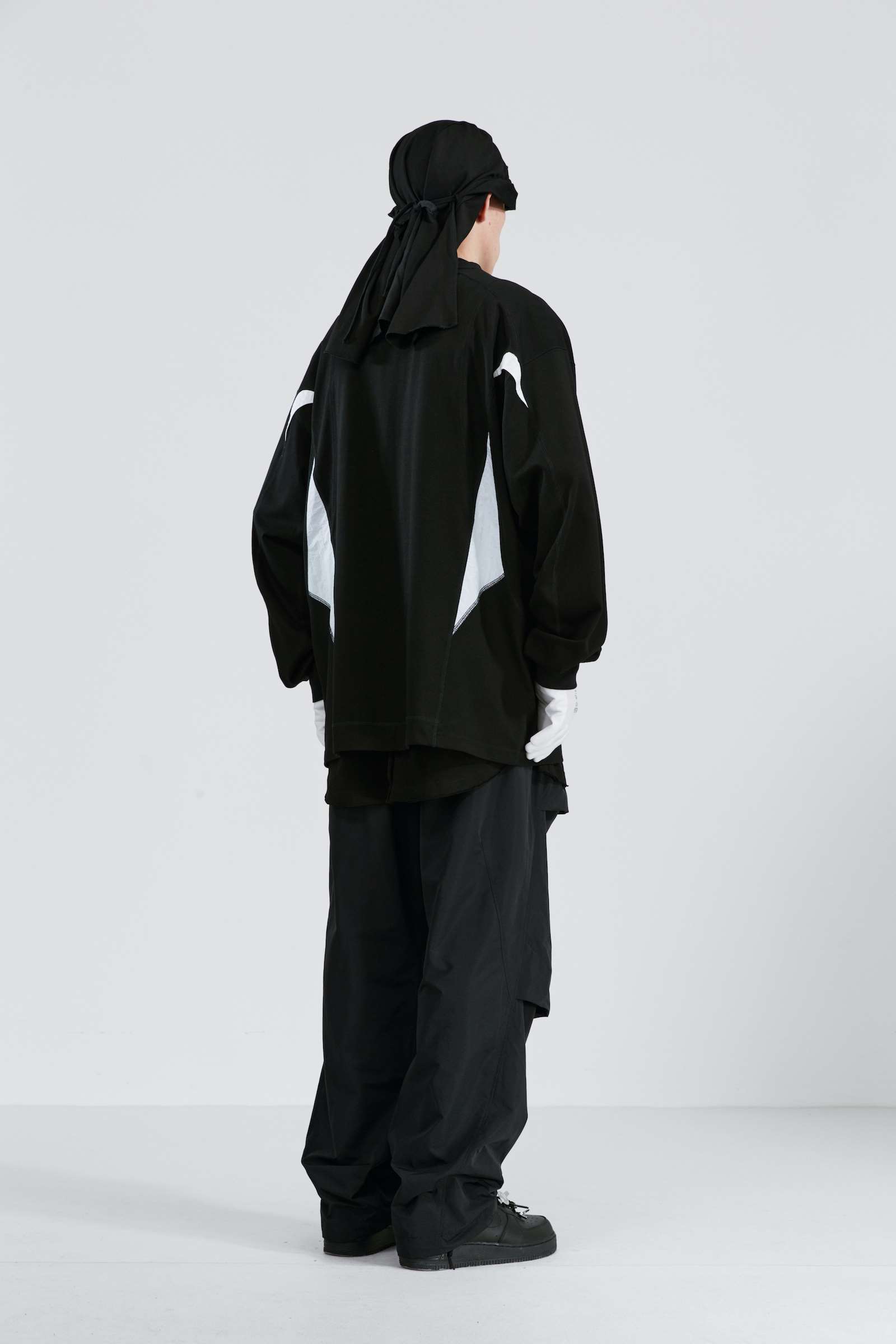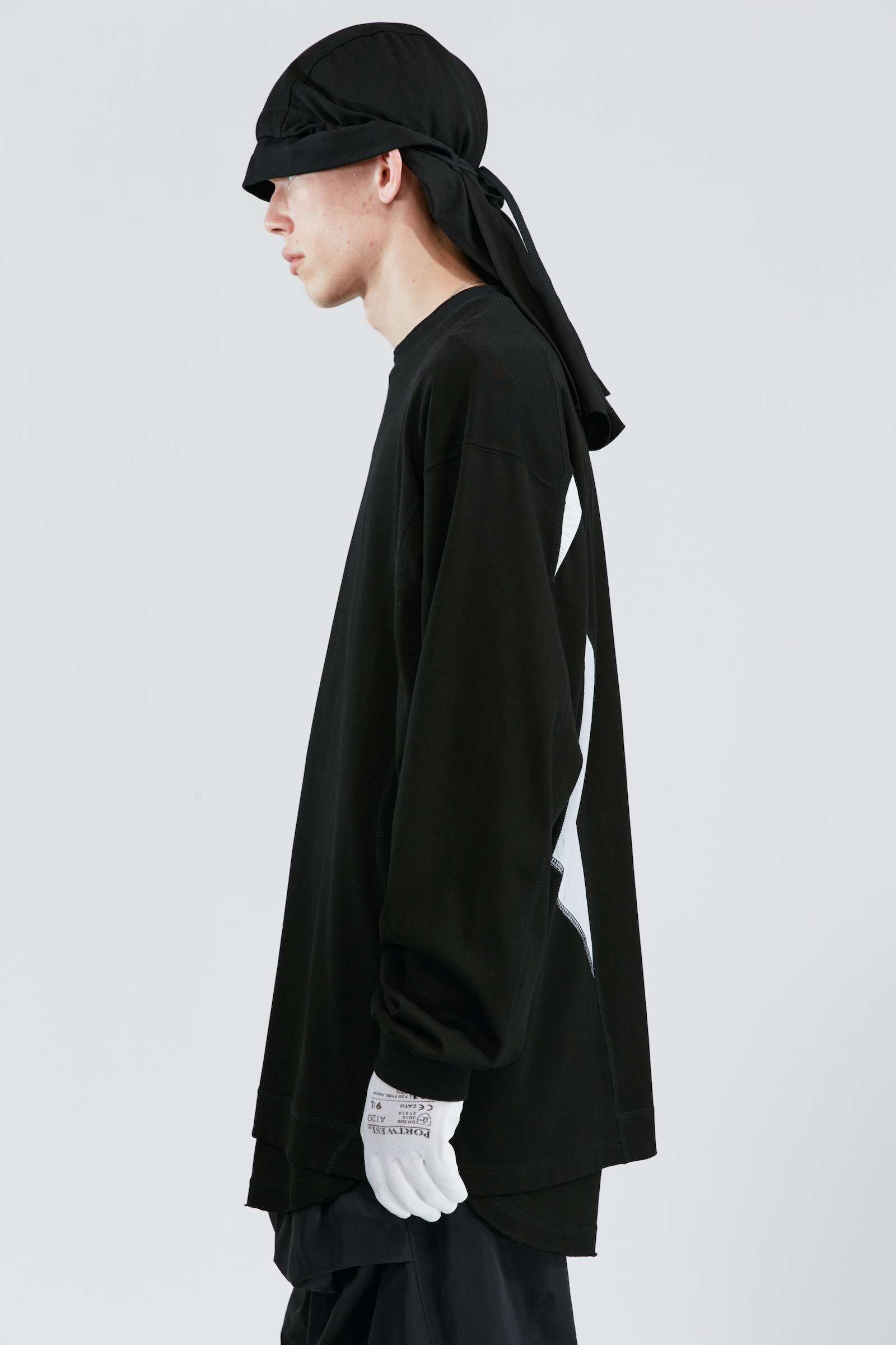 ATTEMPT SS21 流线拼接长袖T恤拼色落肩宽松休闲明线装饰体恤