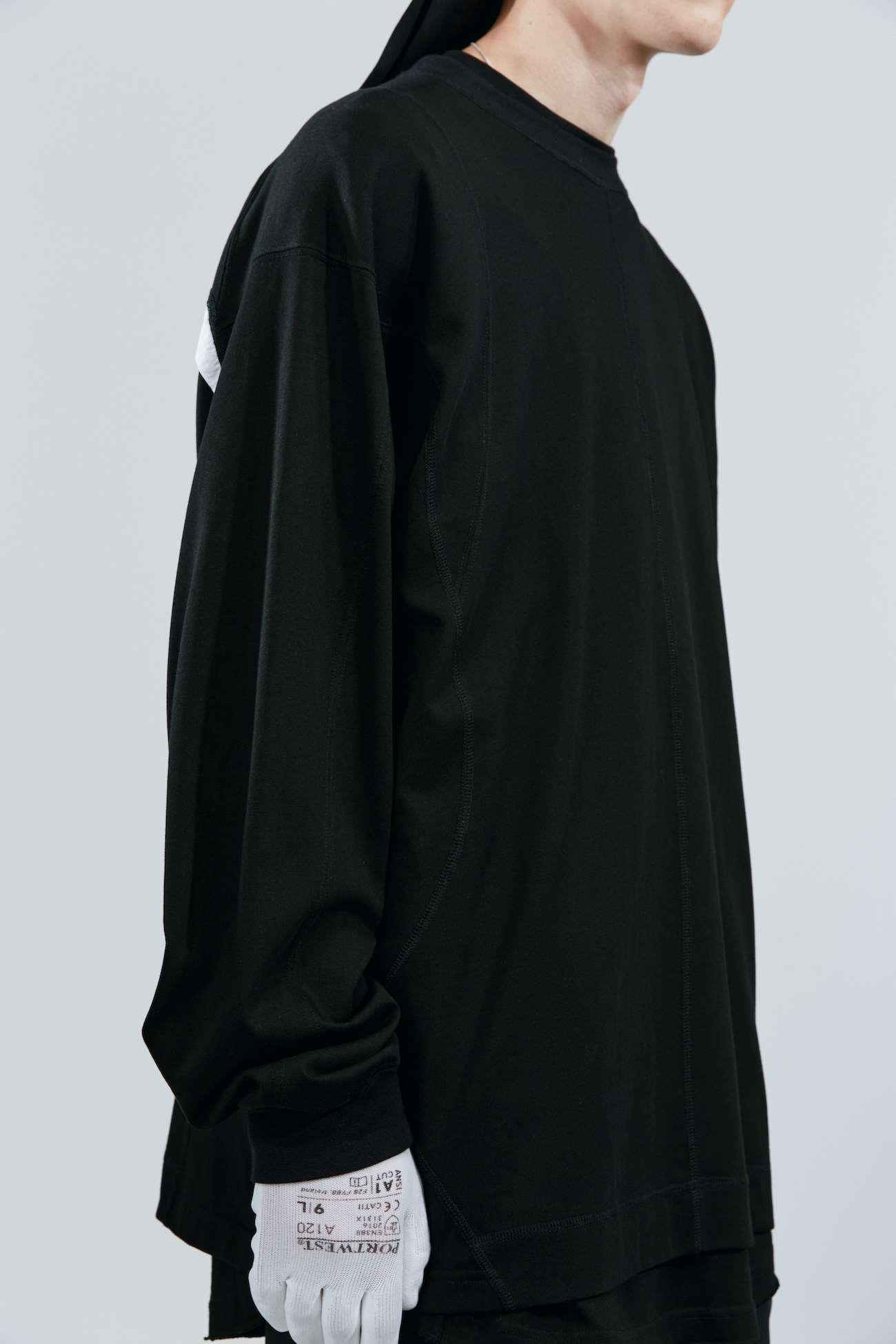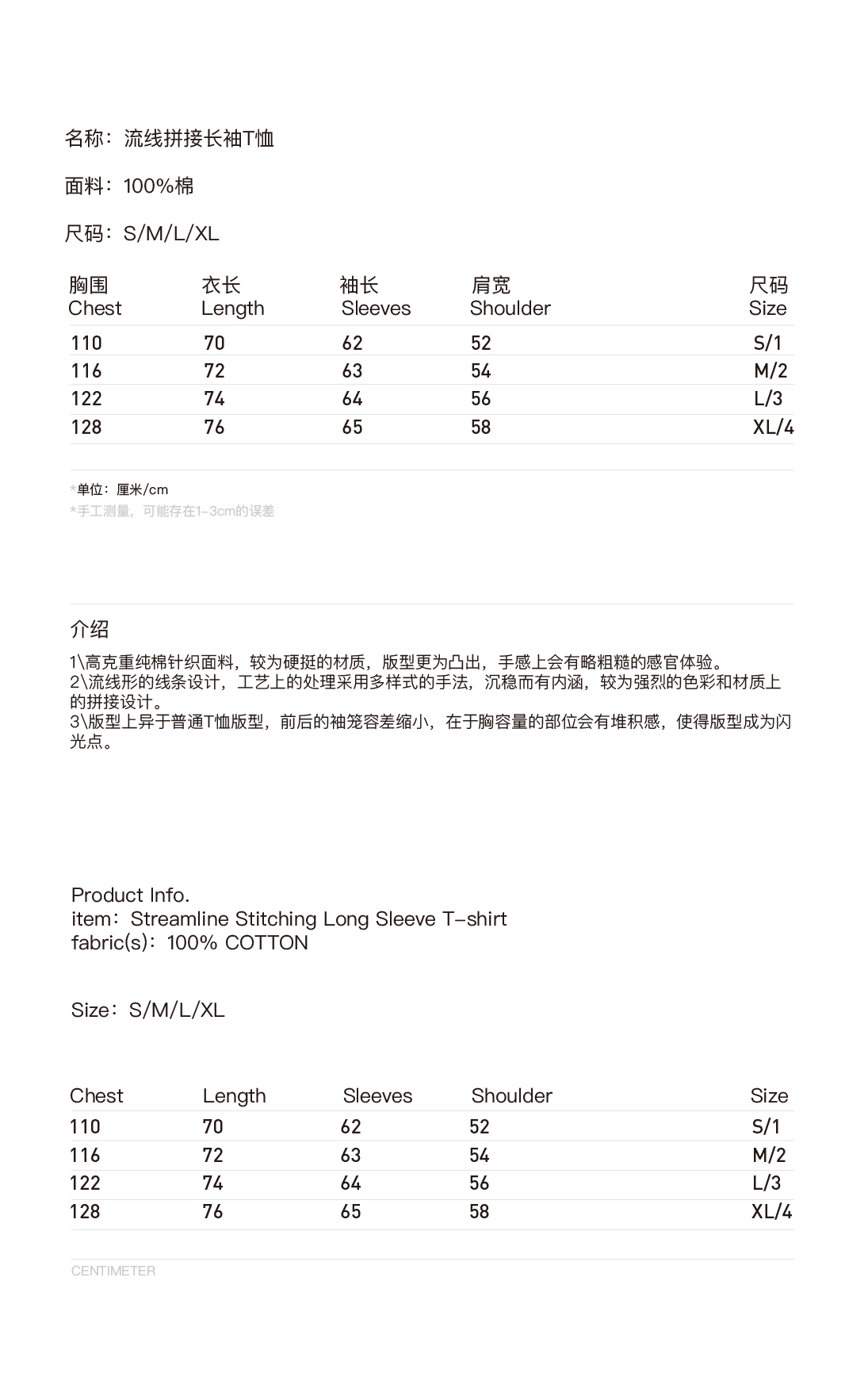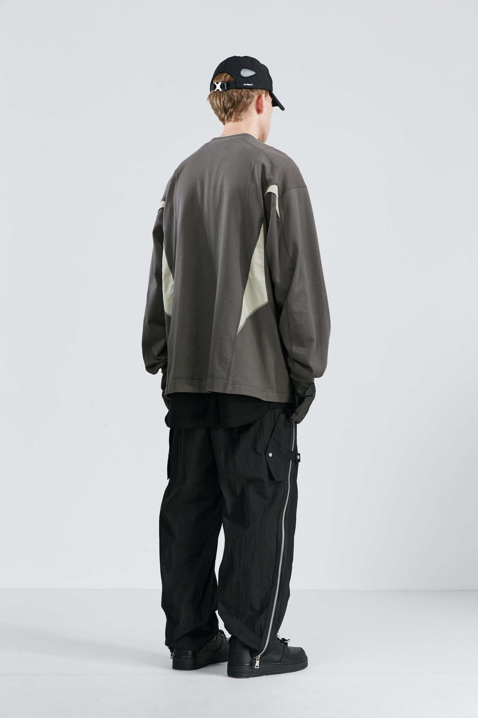 ATTEMPT SS21 流线拼接长袖T恤拼色落肩宽松休闲明线装饰体恤