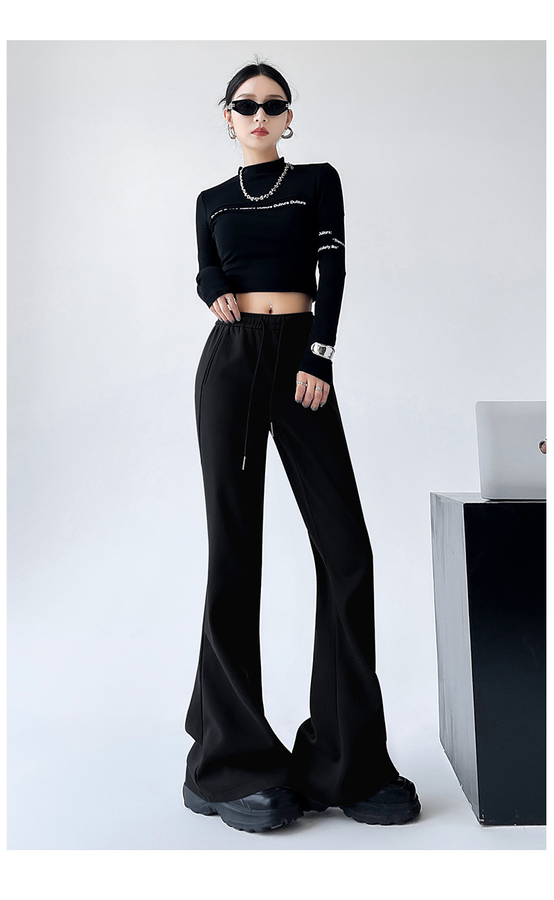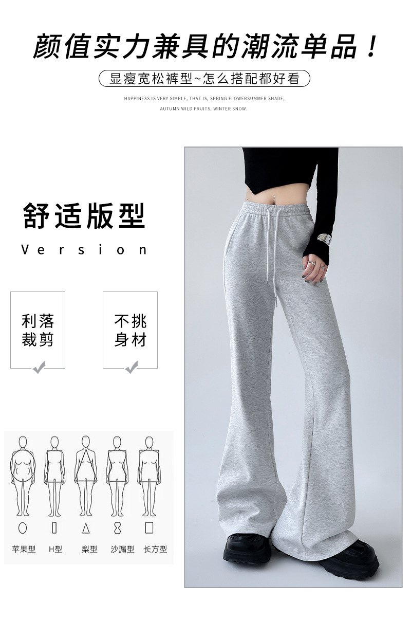 「美式复古风!四色可选」华棉喇叭裤子女春夏修身显瘦运动卫裤休闲垂感拖地马蹄裤下装