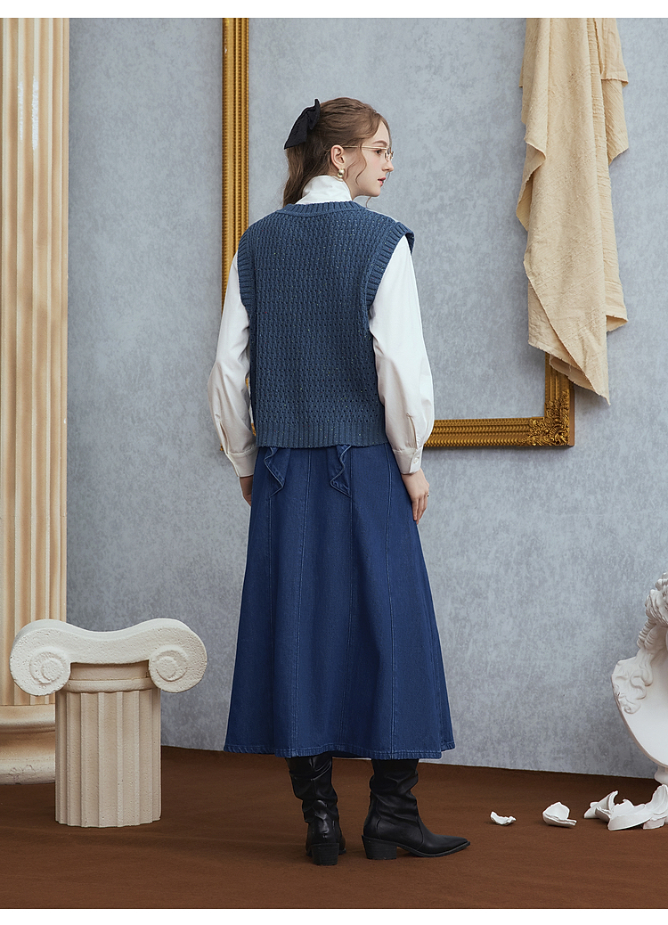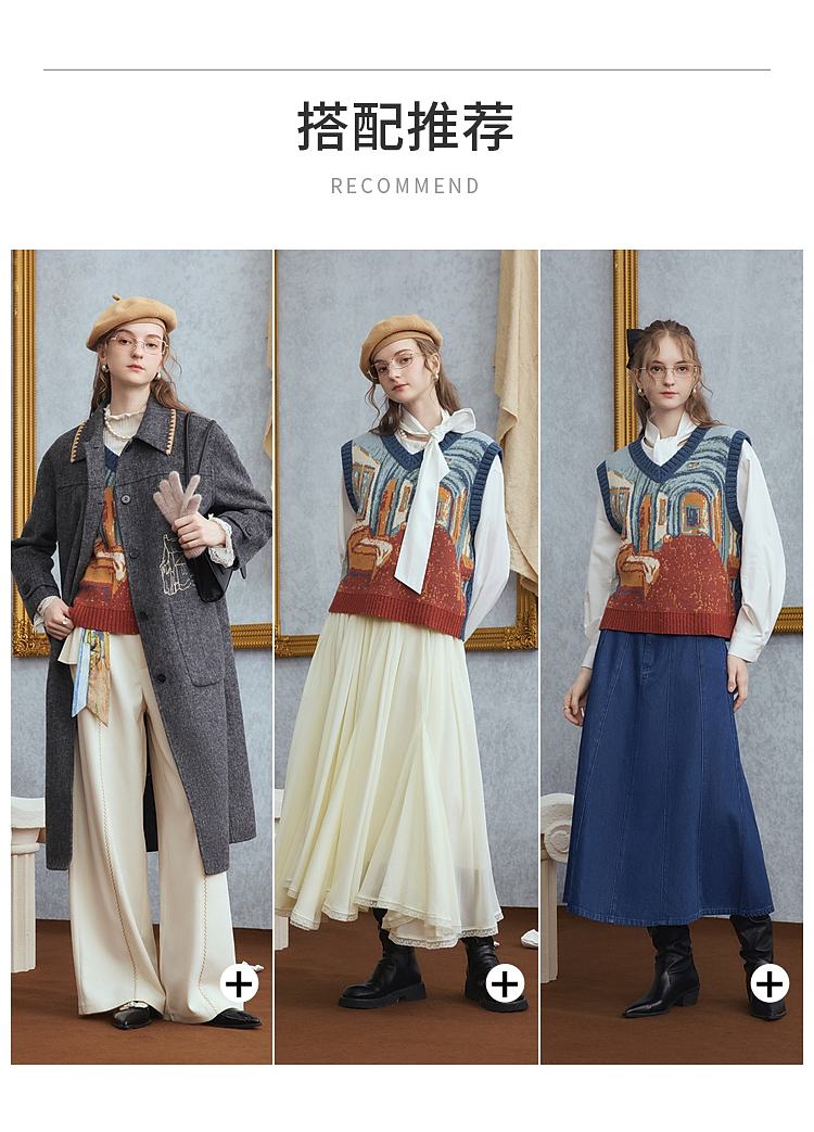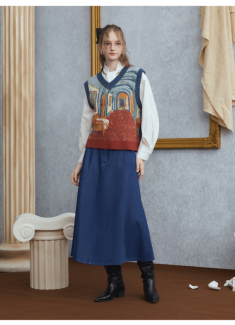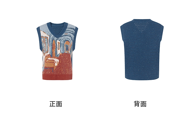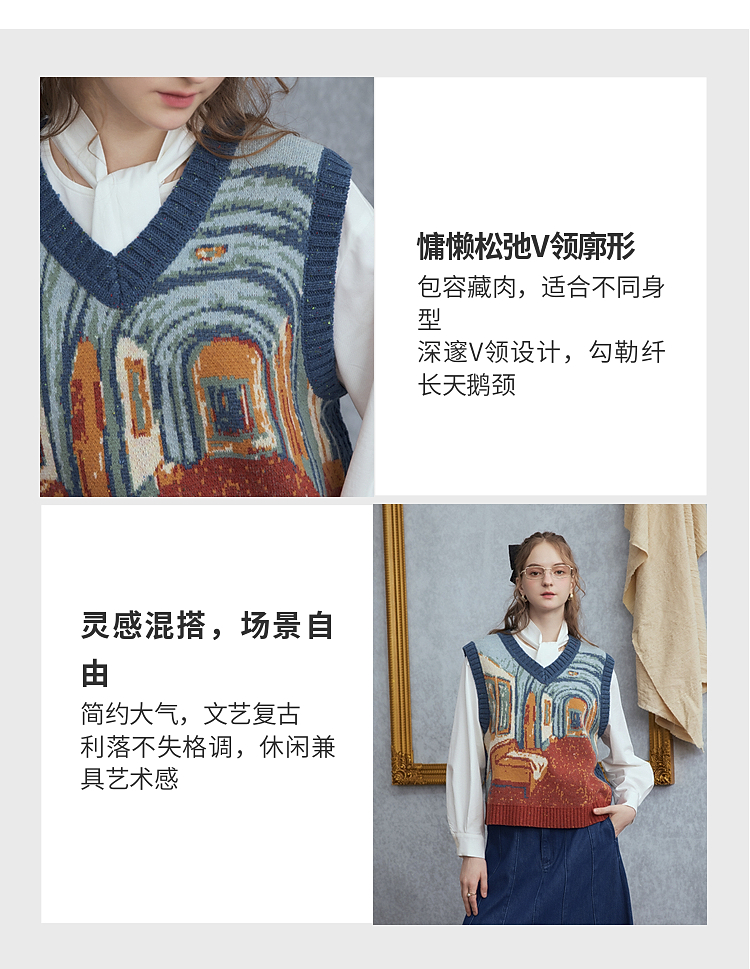 两三事梵高文艺月洇空庭2025冬季新款抽象图案毛织马甲女宽松马夹