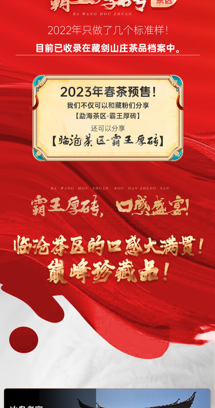 【藏剑山庄】 2023春茶现货 霸王厚砖临沧篇!狂香野韵!500克/砖!买8砖送1砖