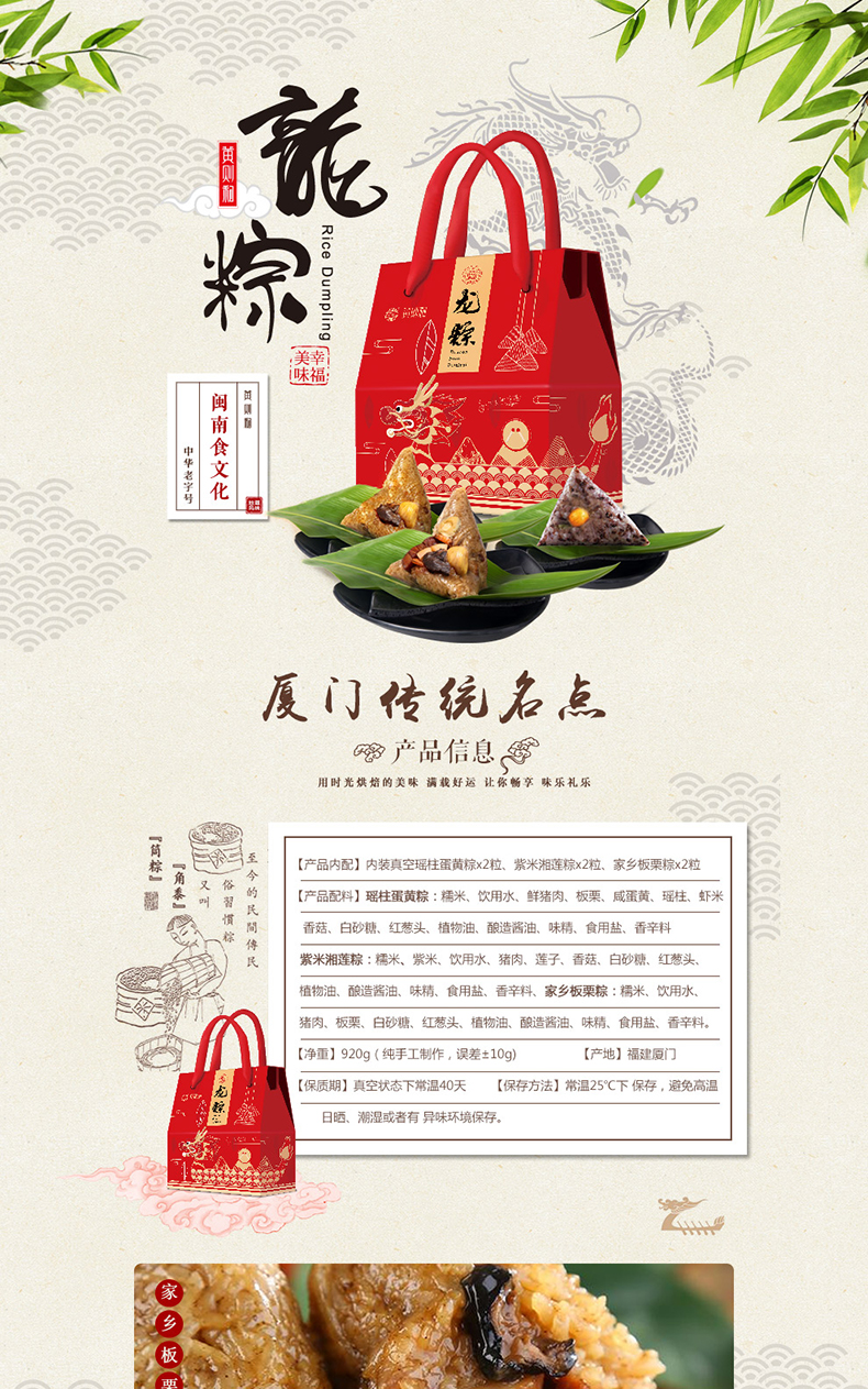 中华老字号黄则和端午粽子礼盒【龙粽】 瑶柱蛋黄粽2粒 紫米湘莲粽2粒 家乡板栗粽2粒 中华老字号 地道老味道