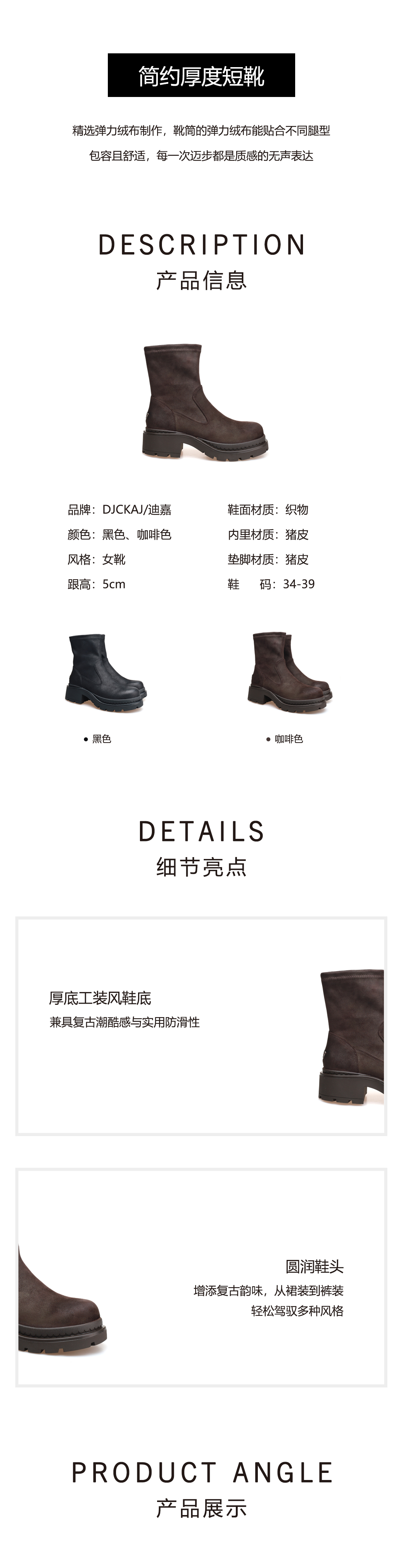 豪麟名鞋奥莱迪嘉女鞋短靴织物DJHJO52WN203黑色 原价1960元