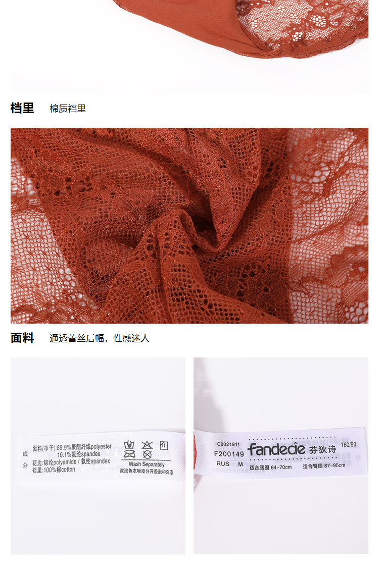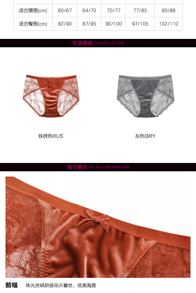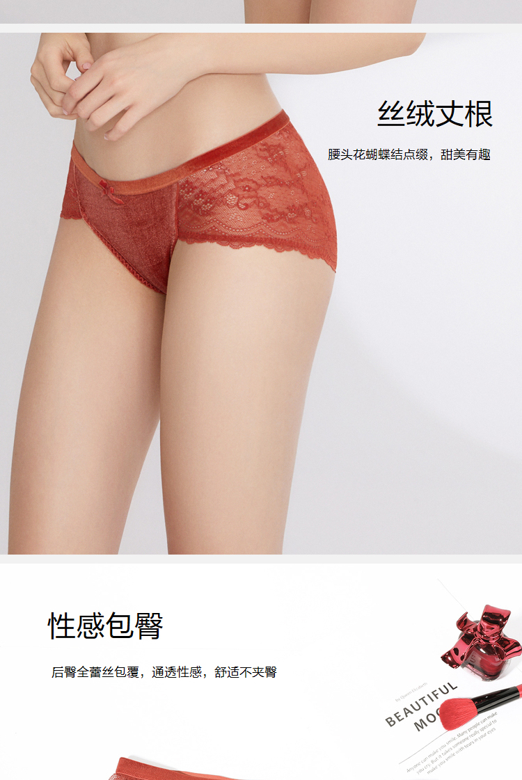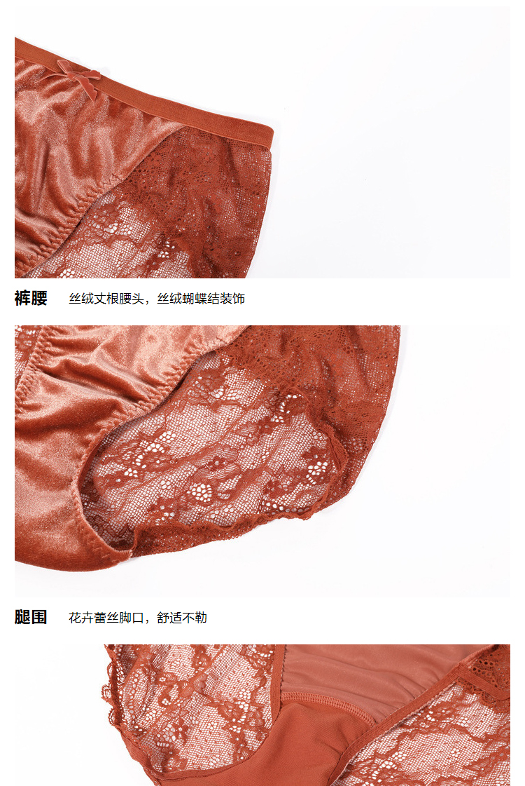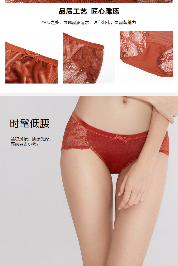 芬狄诗蕾丝性感复古丝绒拼接内裤女薄款包臀低腰三角裤F200149