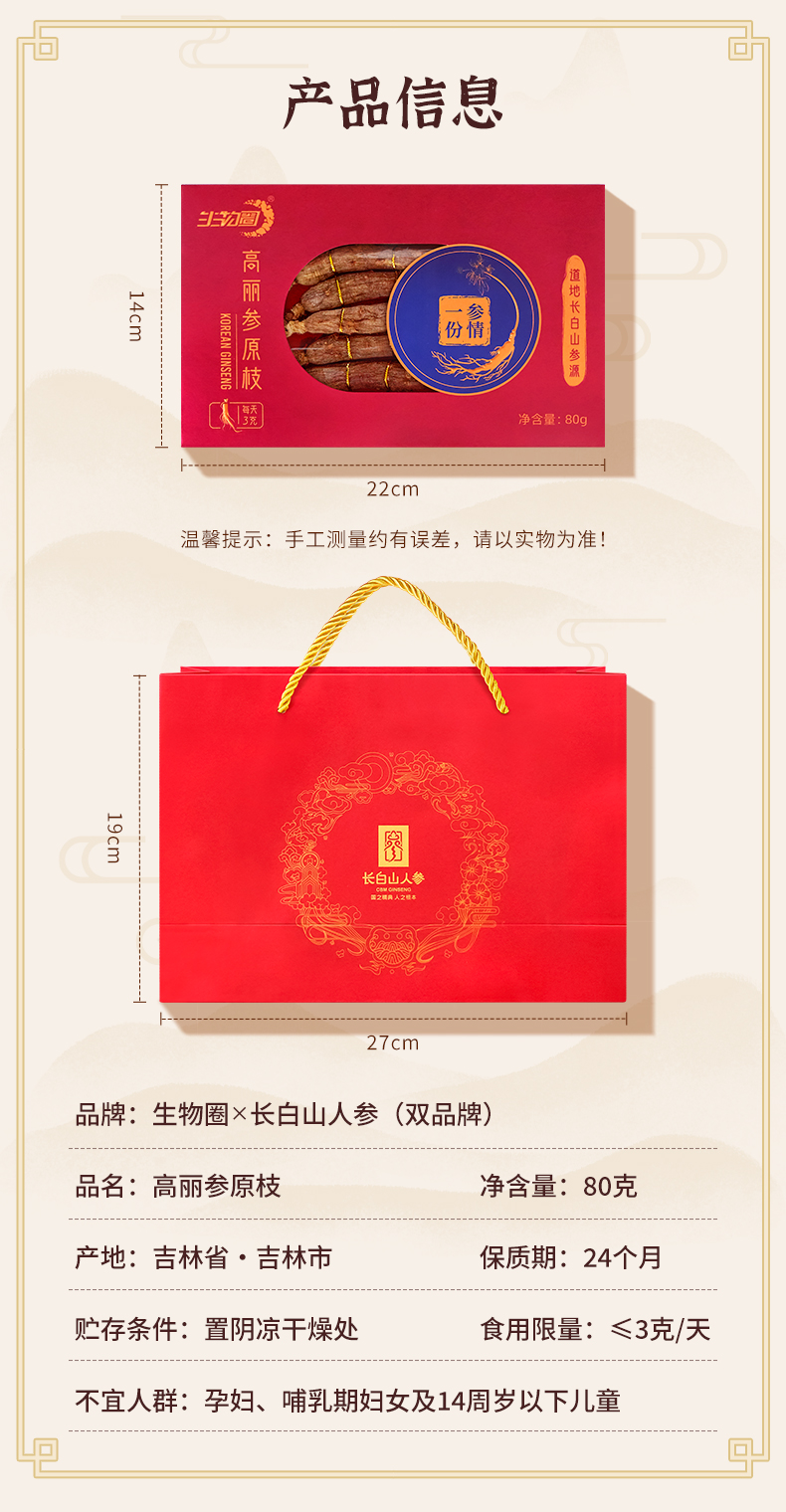 热卖【高丽参原枝】生物圈系列高丽参整支礼盒正品