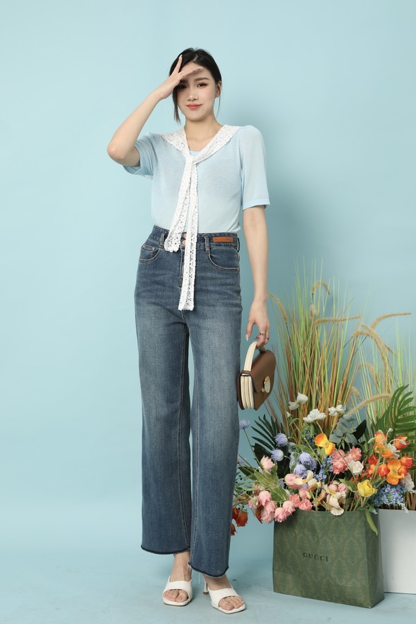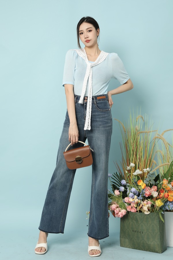 HAYES 高腰双扣直筒牛仔长裤 15652
