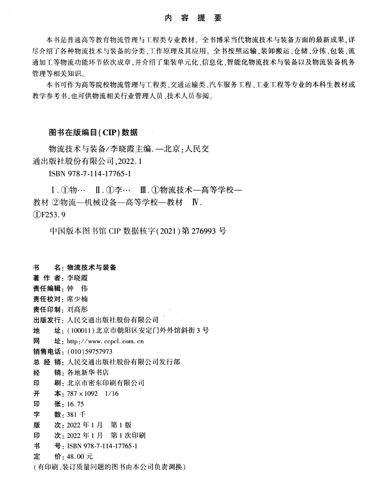 书名:物流技术与装备