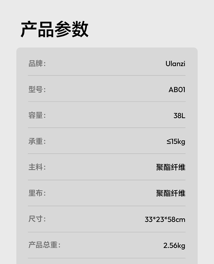 Ulanzi优篮子AB01泰山户外摄影双肩包相机包多功能双肩包