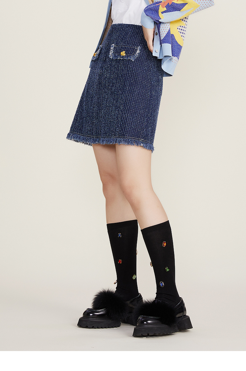 谜底2022冬季新款半身裙女时尚百搭小香风包臀裙短裙224MB1606