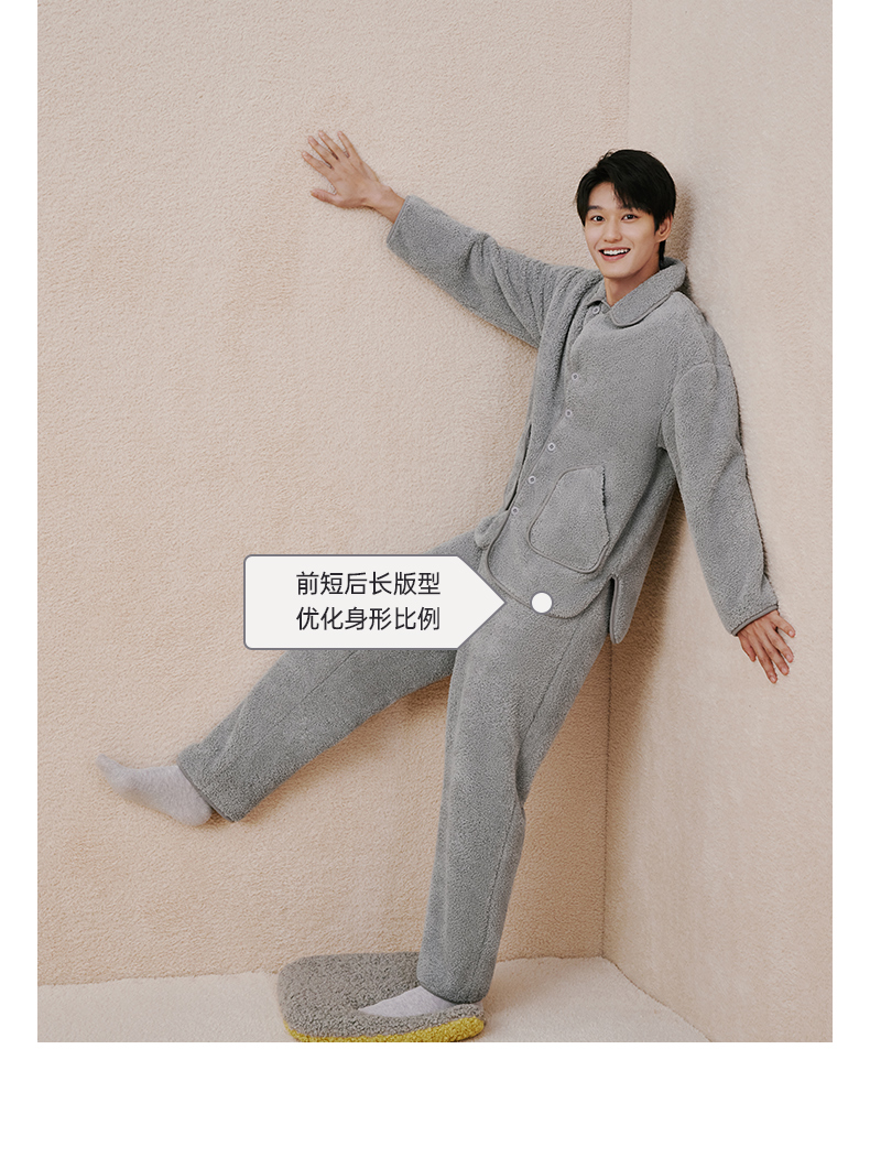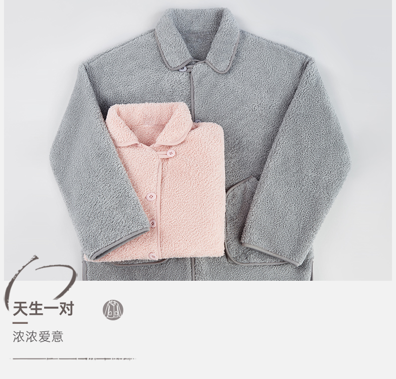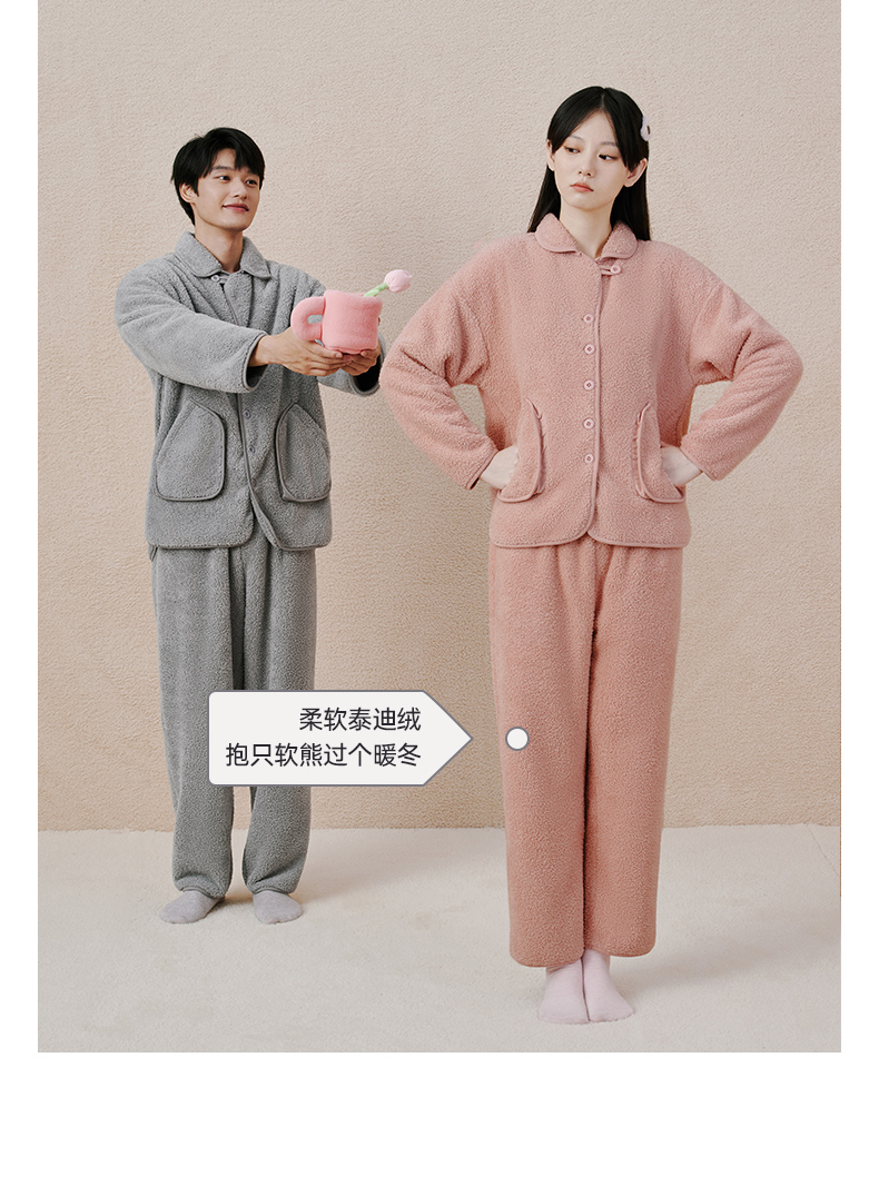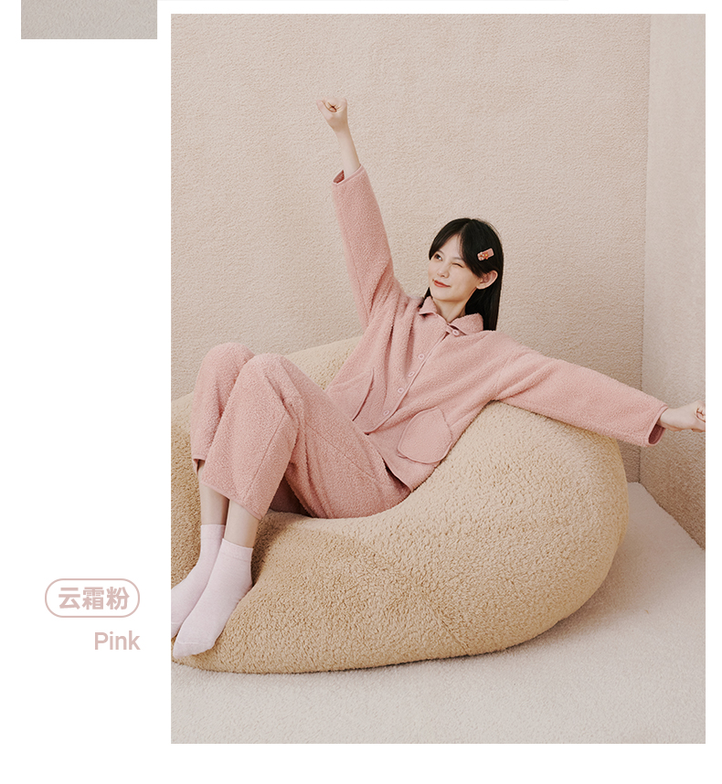 Threegun三枪 【泰迪绒】翻领开襟长袖长裤女士家居套家居服-82180D011