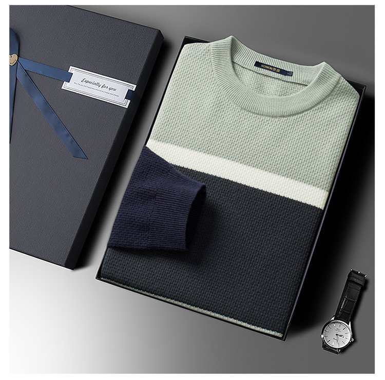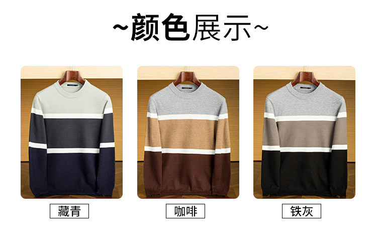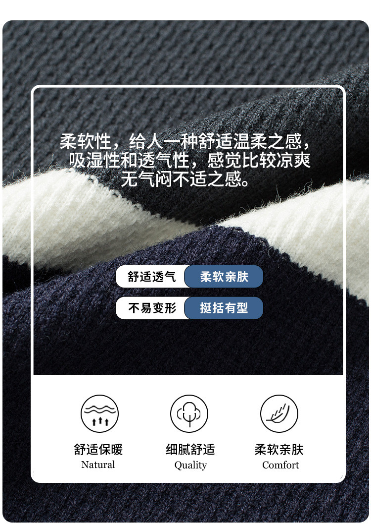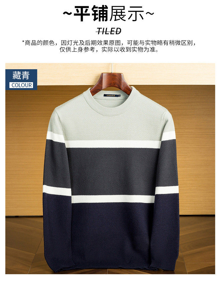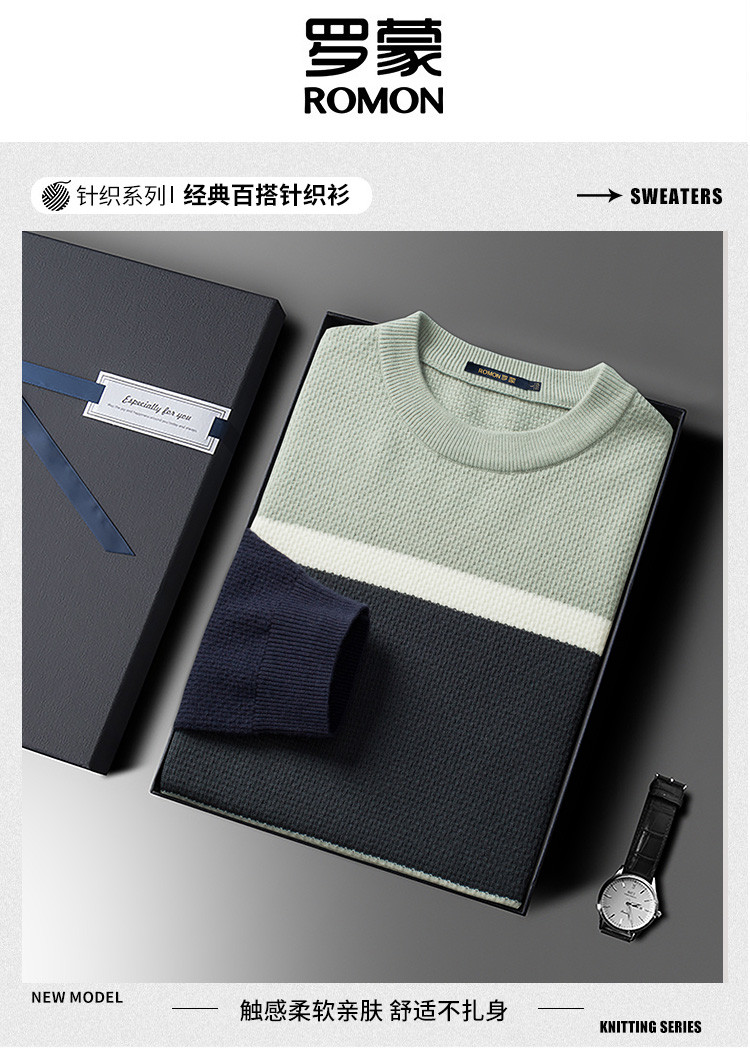 罗蒙秋冬时尚撞色男士毛衣舒适透气柔软毛衣男休闲潮流百搭基础针织衫男 商品图8