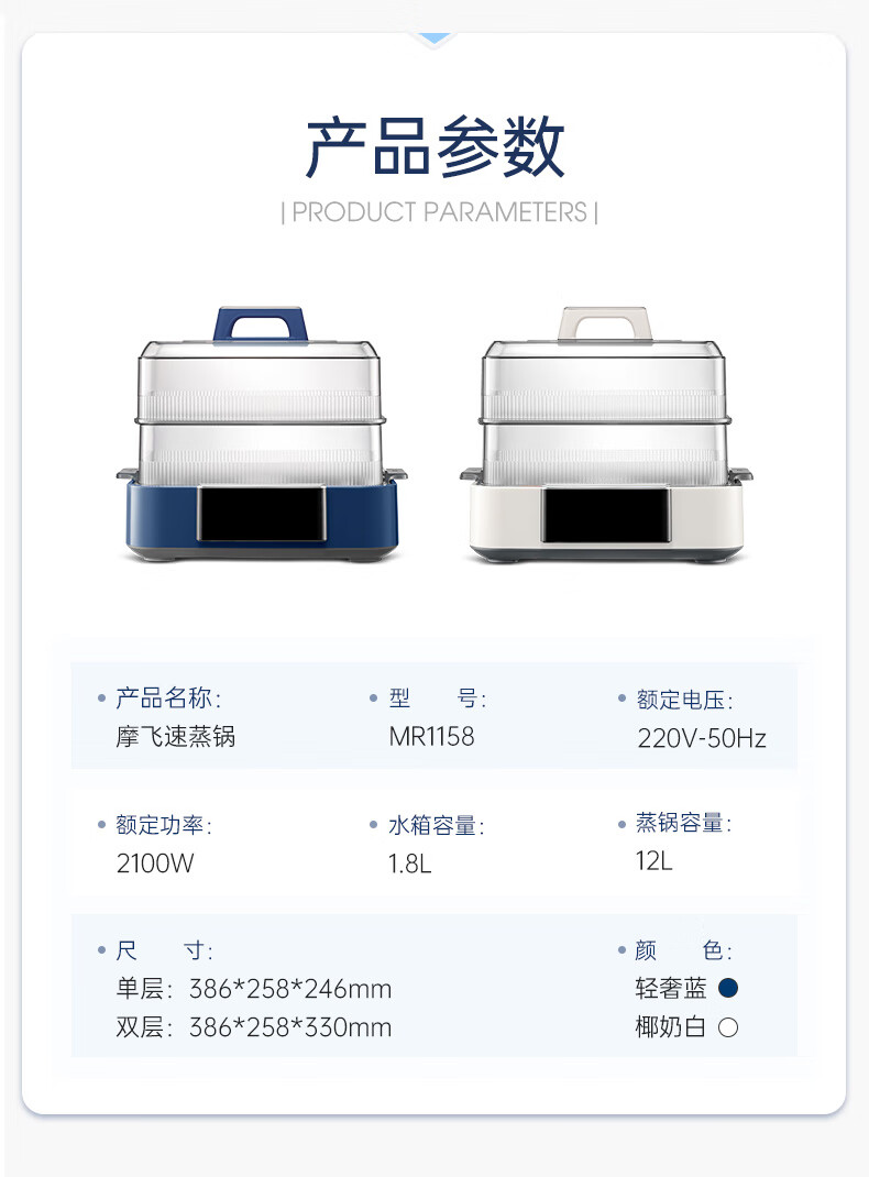 【小家电】摩飞急速蒸锅MR1158 HF