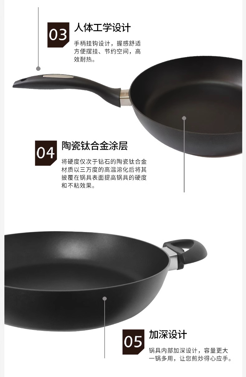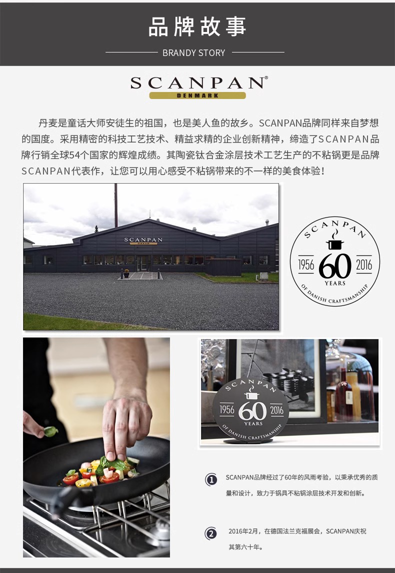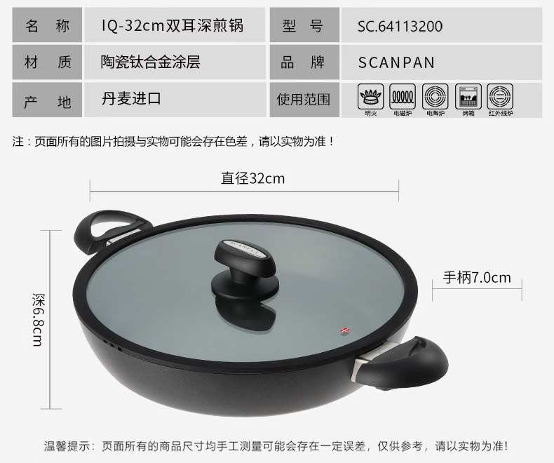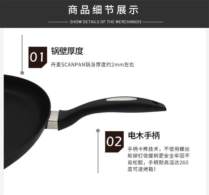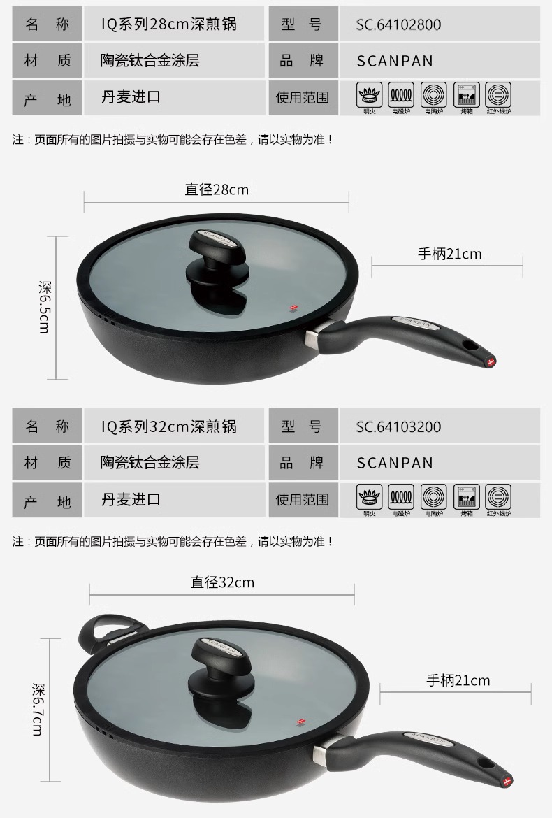 丹麦进口不粘锅SCANPAN原装煎炒锅家用平底锅电磁炉燃气灶通用(可用电磁炉)24/32cm