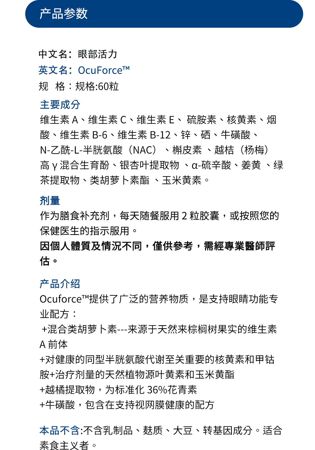 美国DFH 眼部活力 Ocuforce™维生素A#类胡萝卜素#design for health 60粒/瓶