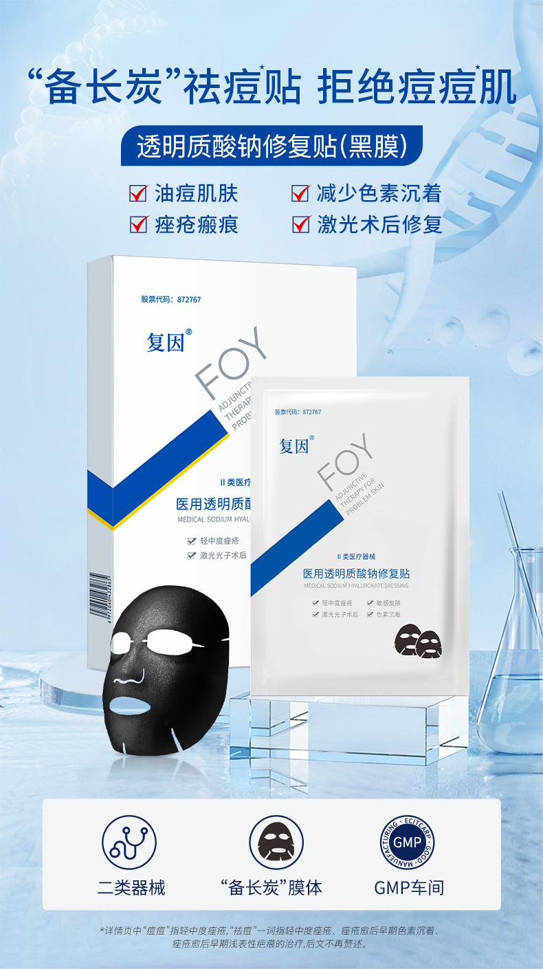 【入会立享折扣】复因FOY医用透明质酸钠修复贴(黑膜)医用 痤疮修复 清洁毛孔 减少色沉