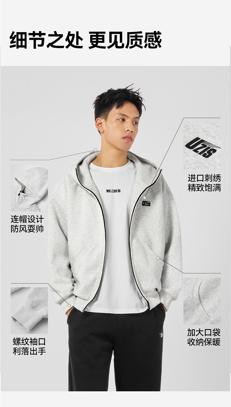 有志者UZIS美式休闲运动外套宽松连帽夹克男跑步篮球秋季新款舒展