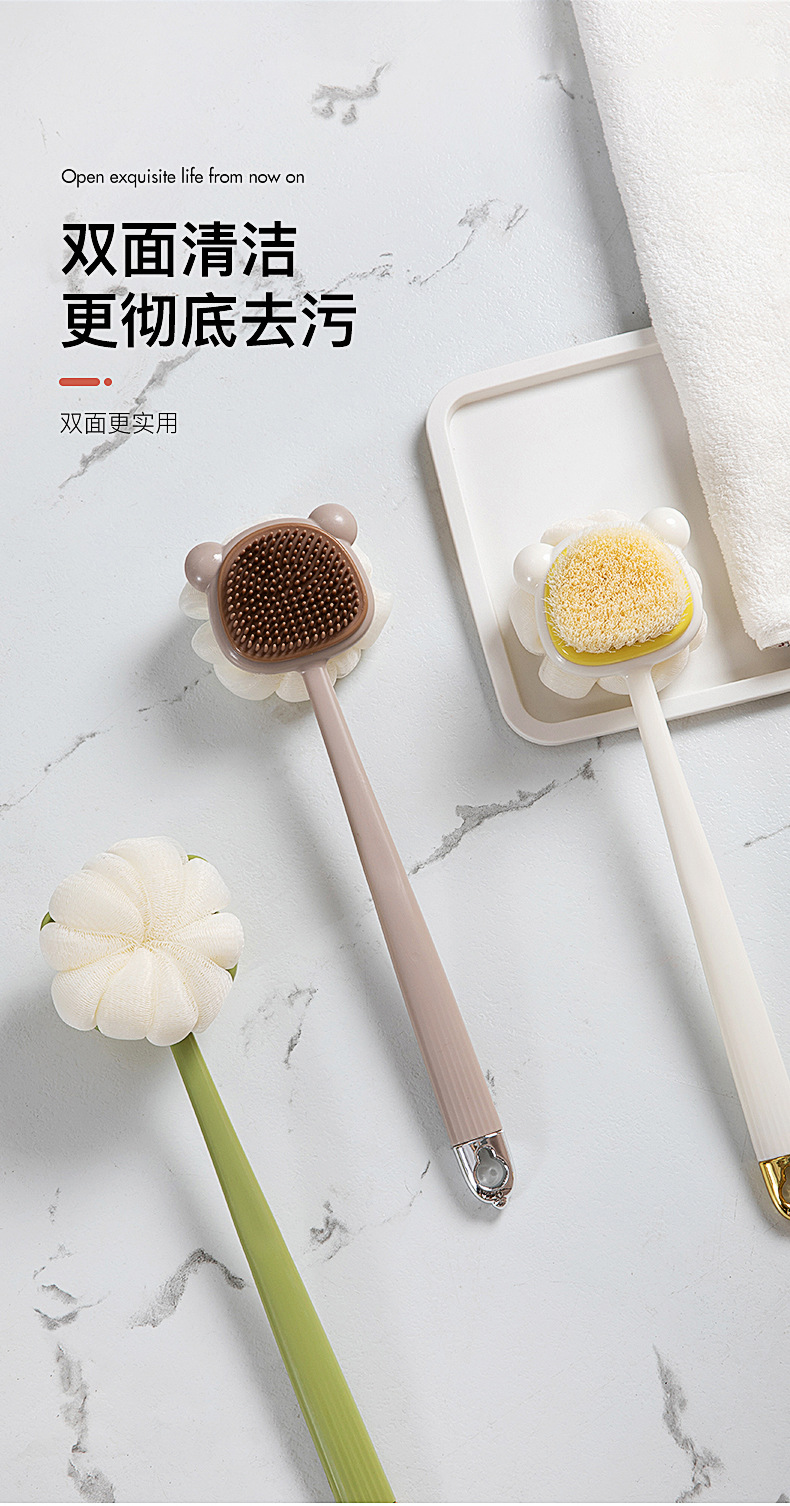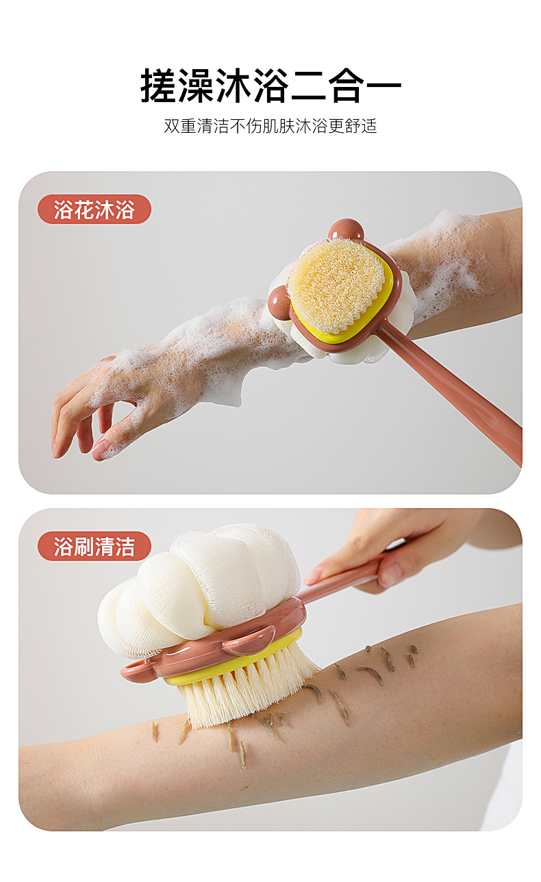 【双面清洁❗️解锁沐浴新方式】长柄搓澡刷双面软毛硅胶洗澡刷,双面清洁更彻底去污,身体清洁浴刷擦背搓背神器刷子QQ
