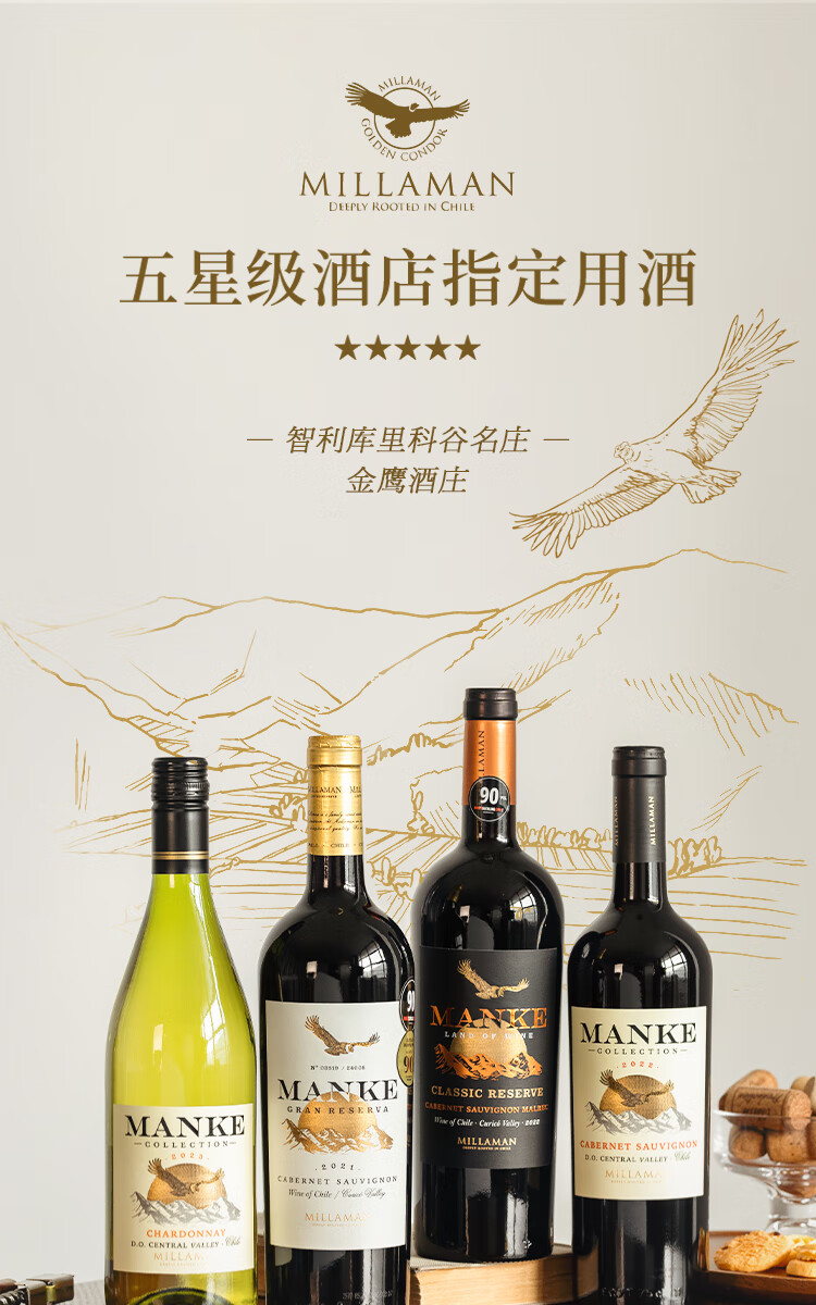 【五星级酒店指定用酒】智利名庄金鹰酒庄系列葡萄酒 智利原瓶进口