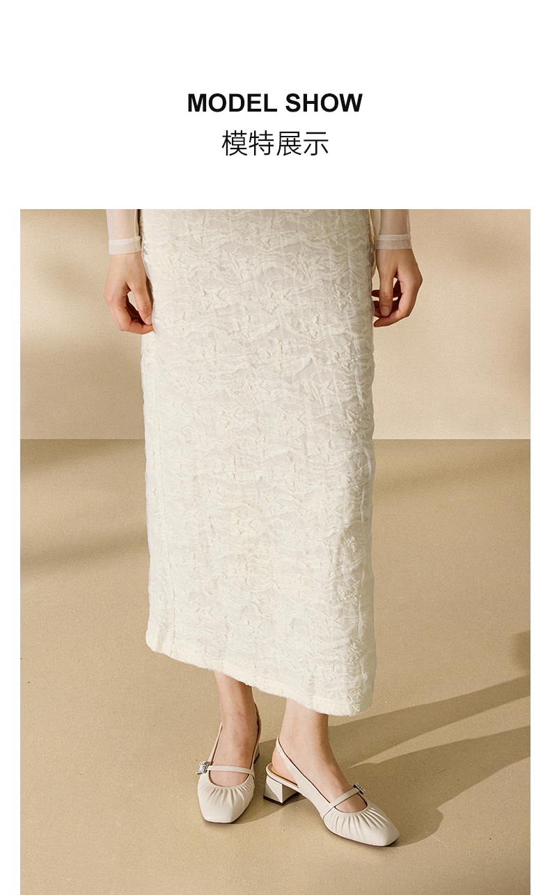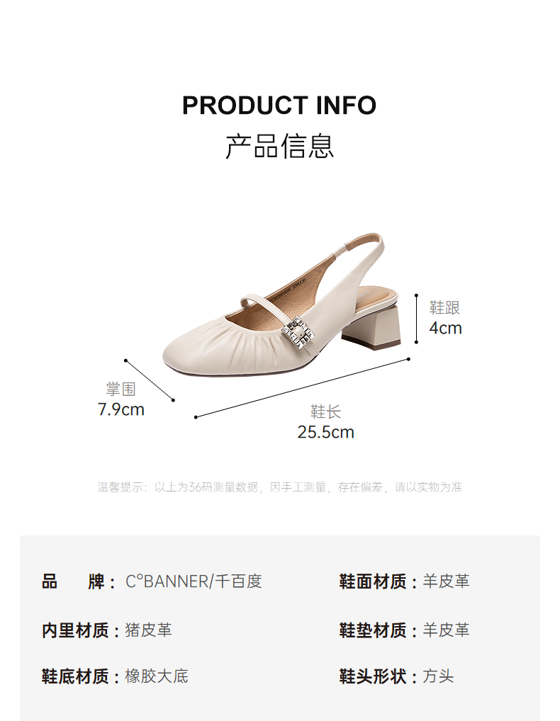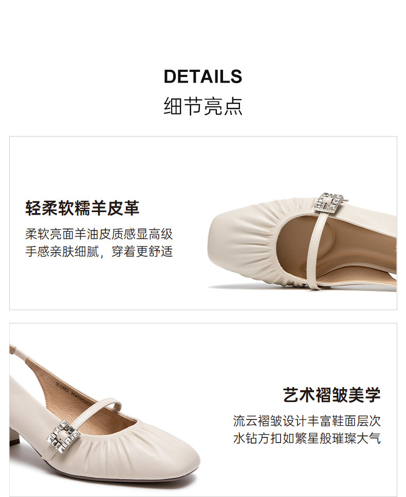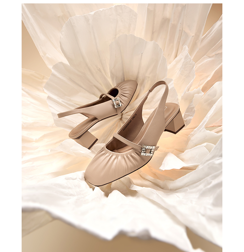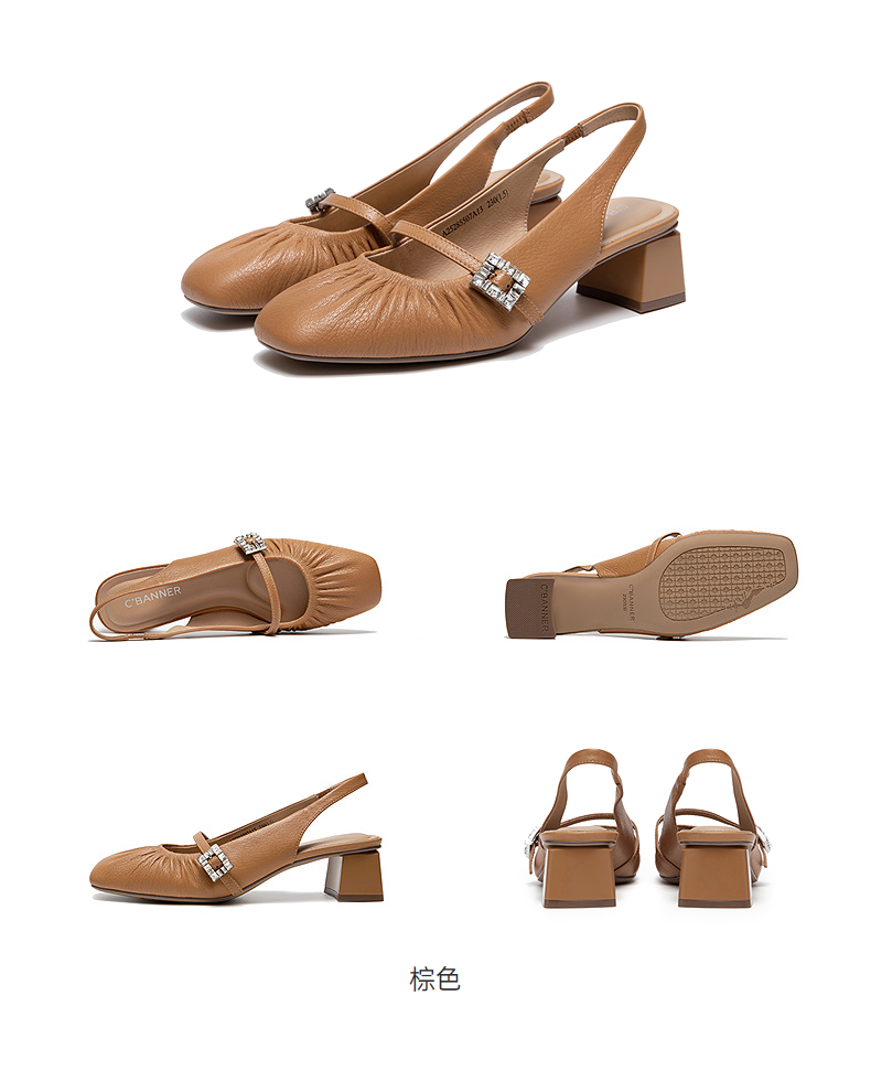 【静音系列】千百度低跟褶皱羊皮时装凉鞋女后空凉鞋A25285507