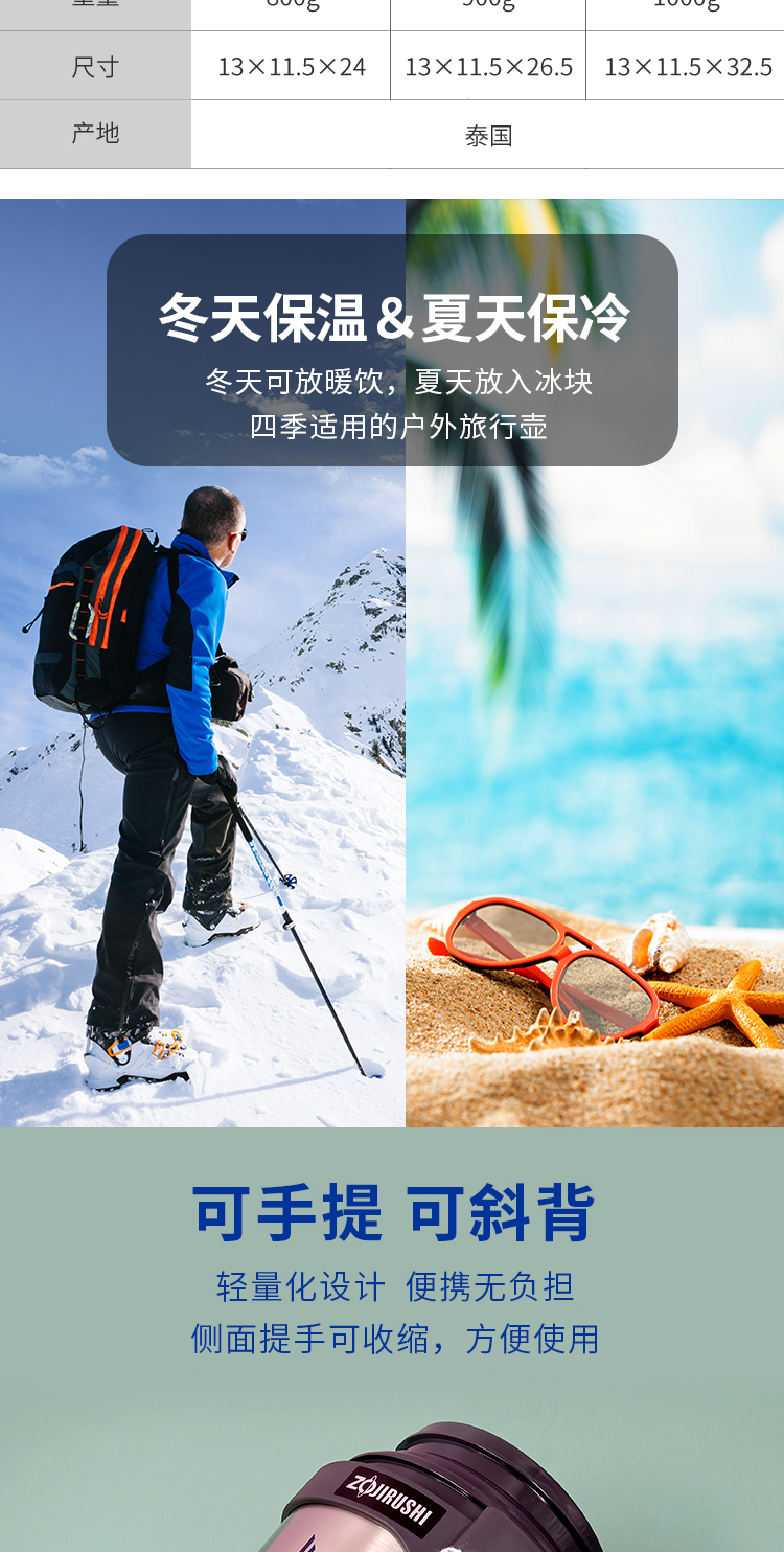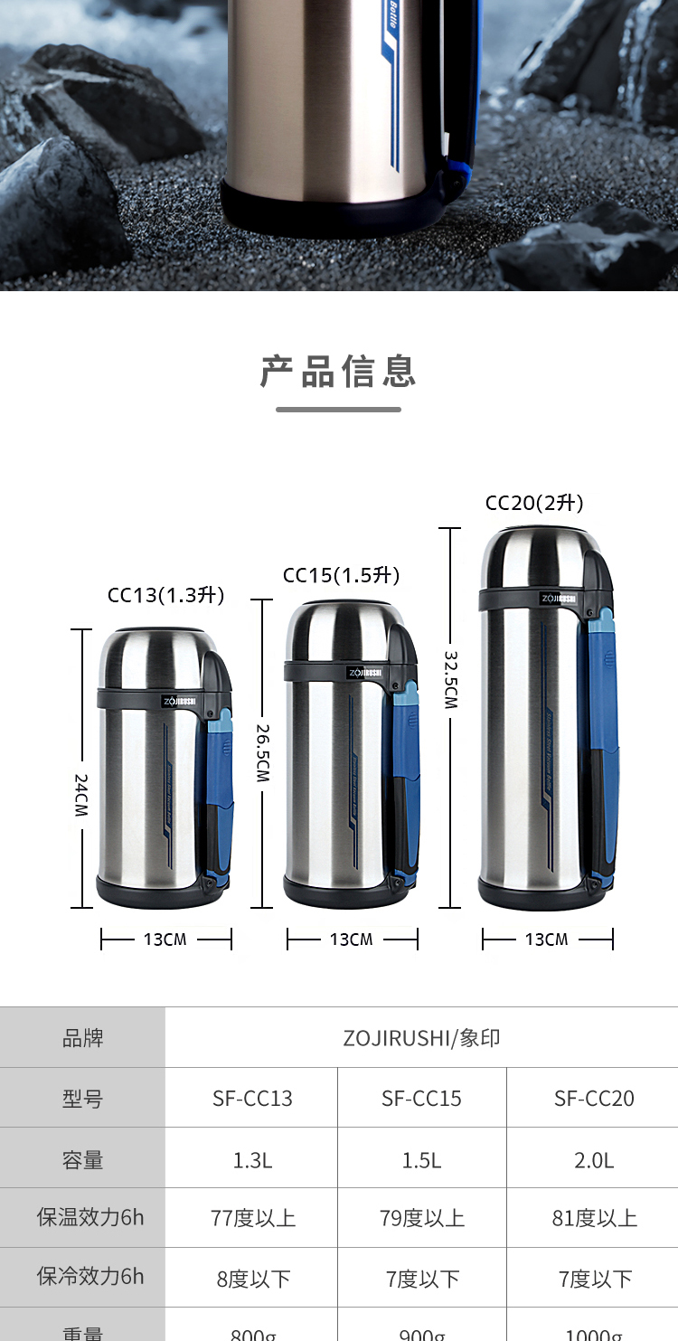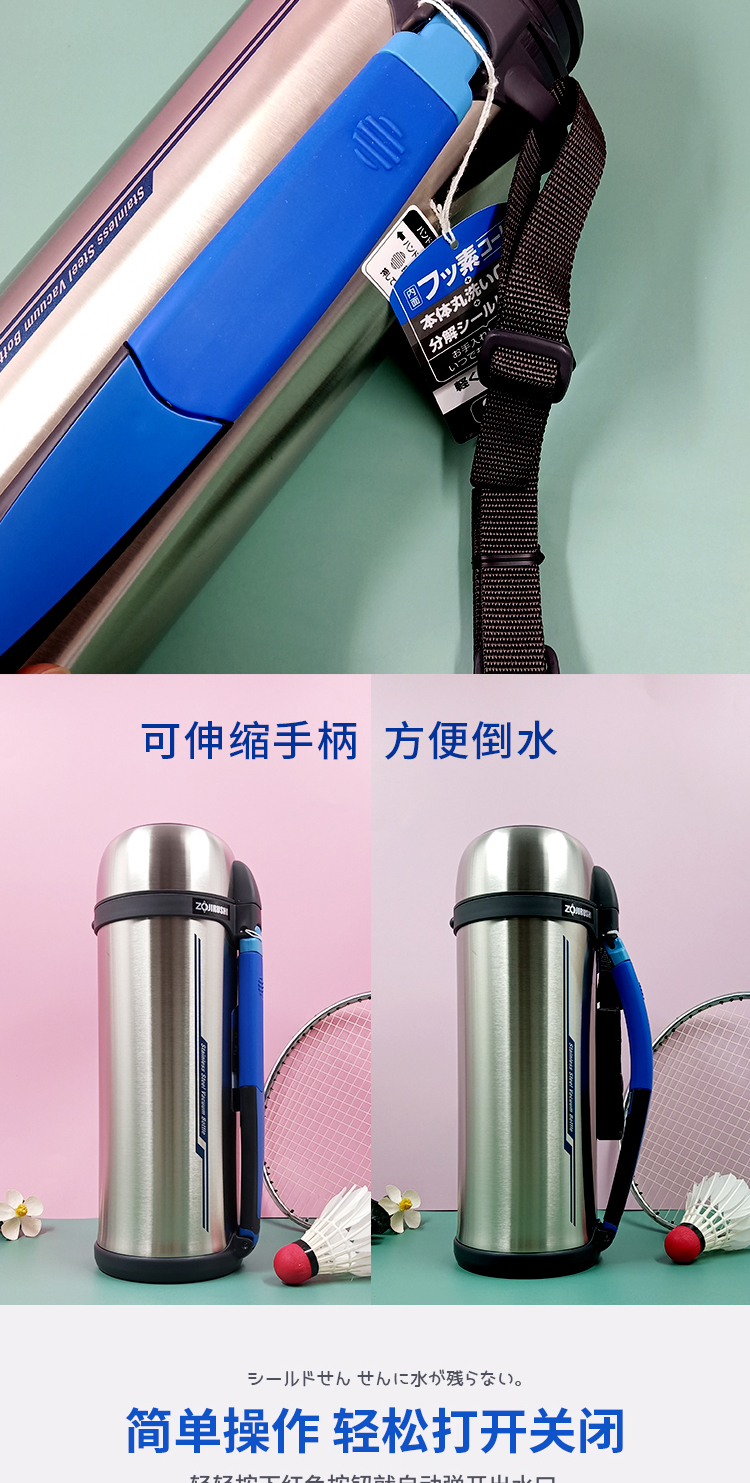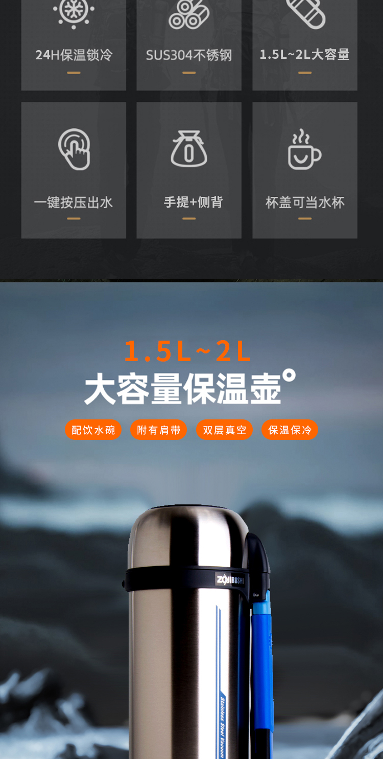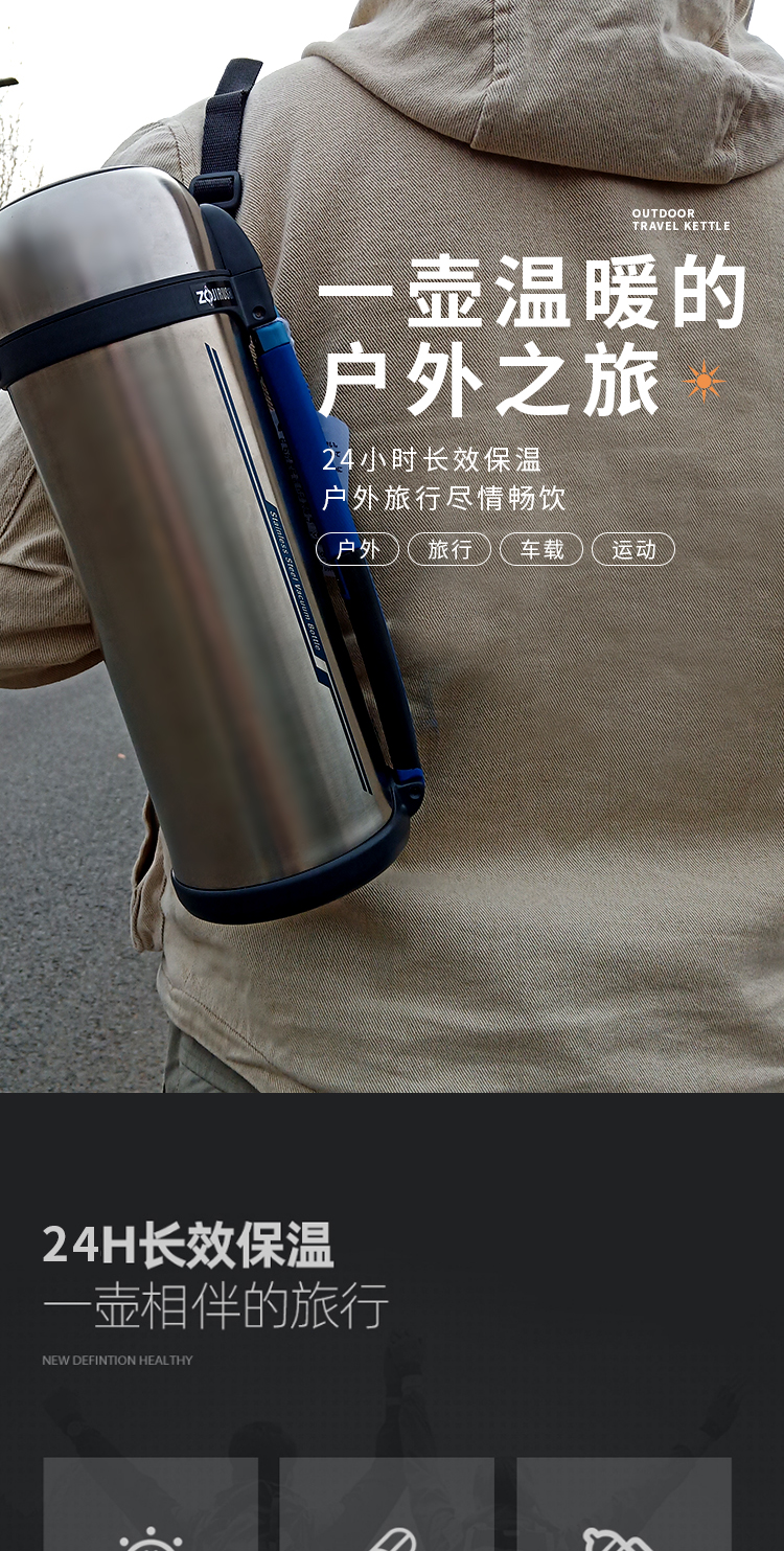 象印ZOJIRUSHI不锈钢真空保温瓶大容量户外旅行车载水壶保温杯 2000ml