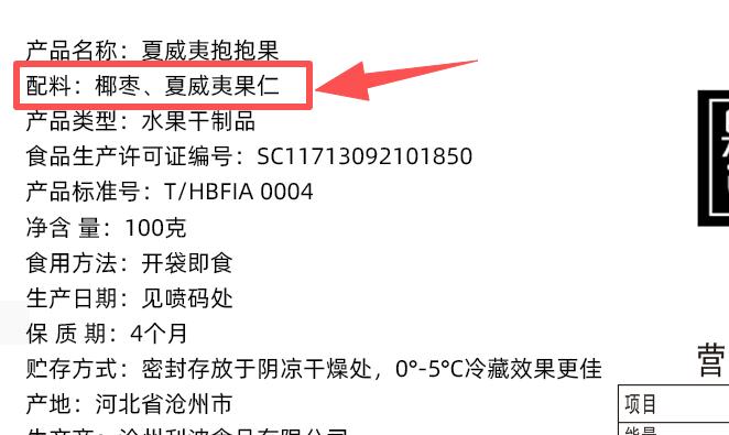 你们看啊,配料表里只有椰枣和夏威夷果