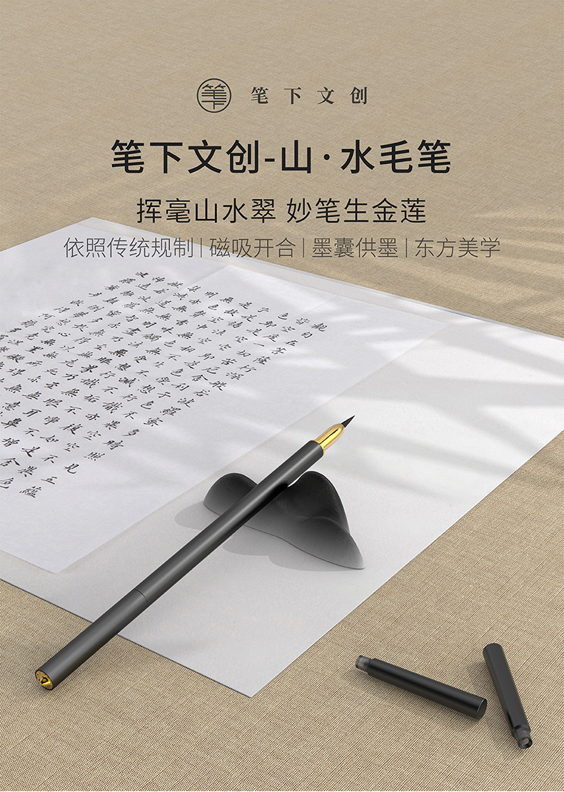 山水毛笔镀金版