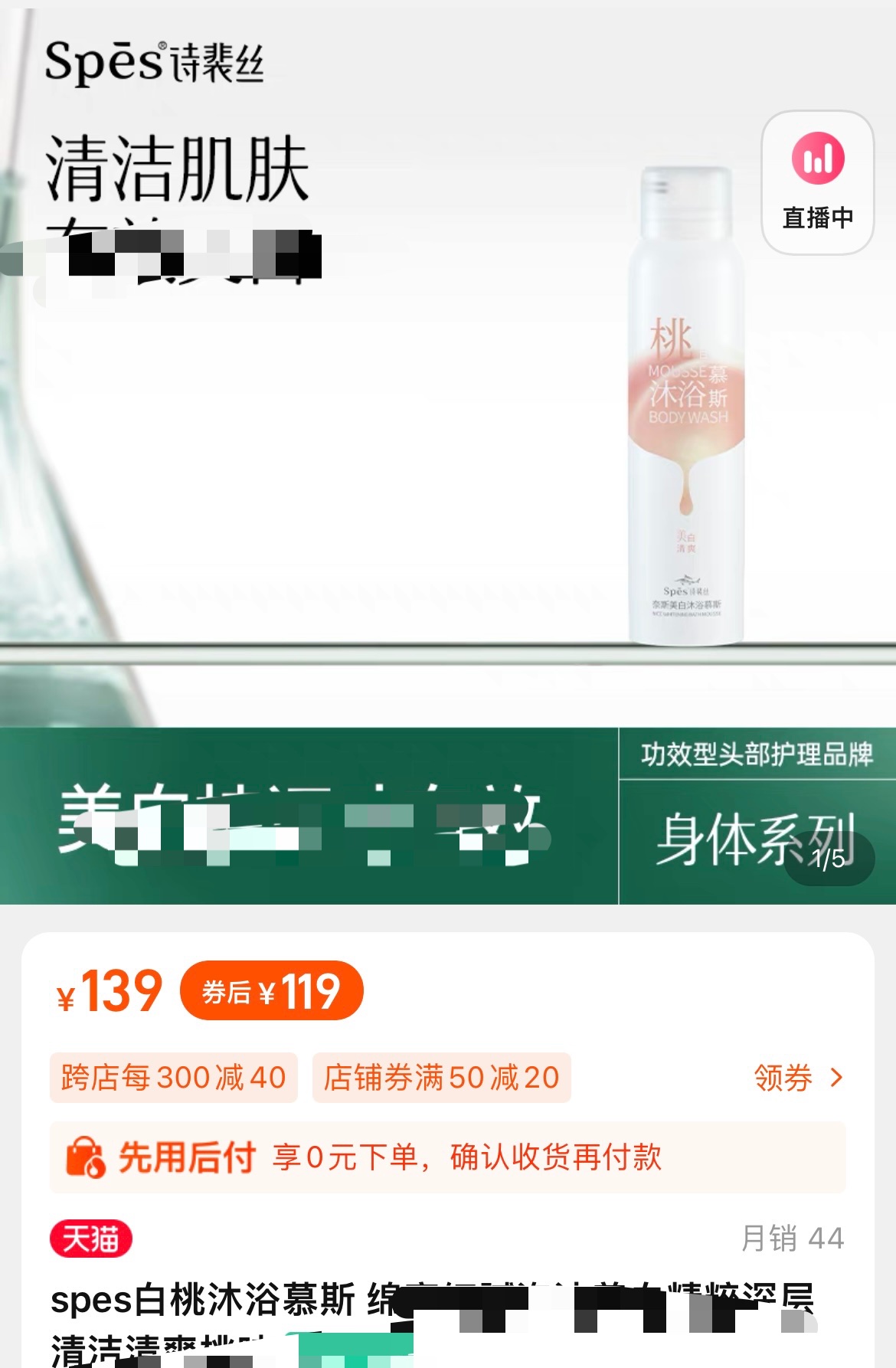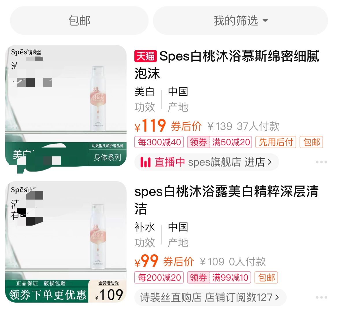 商品名称:【清仓好价】spes白桃沐浴慕斯150ml/*2