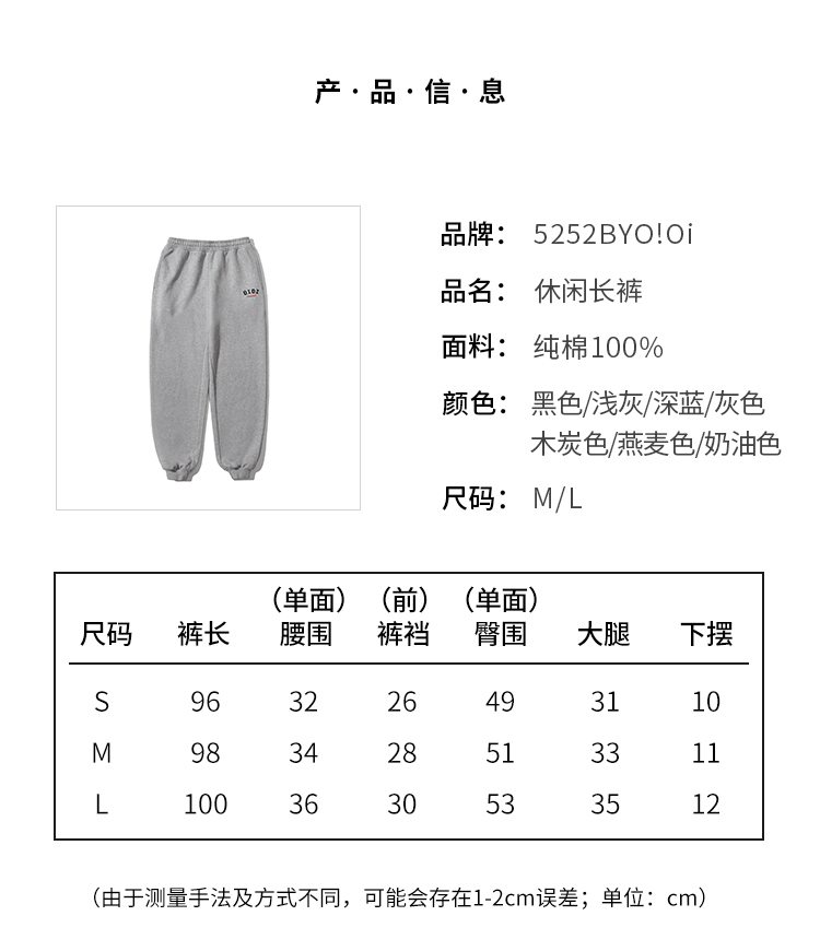 601#[5252byo!oi]2022年春季新款oioi休闲运动长裤男女宽松舒适裤子潮牌