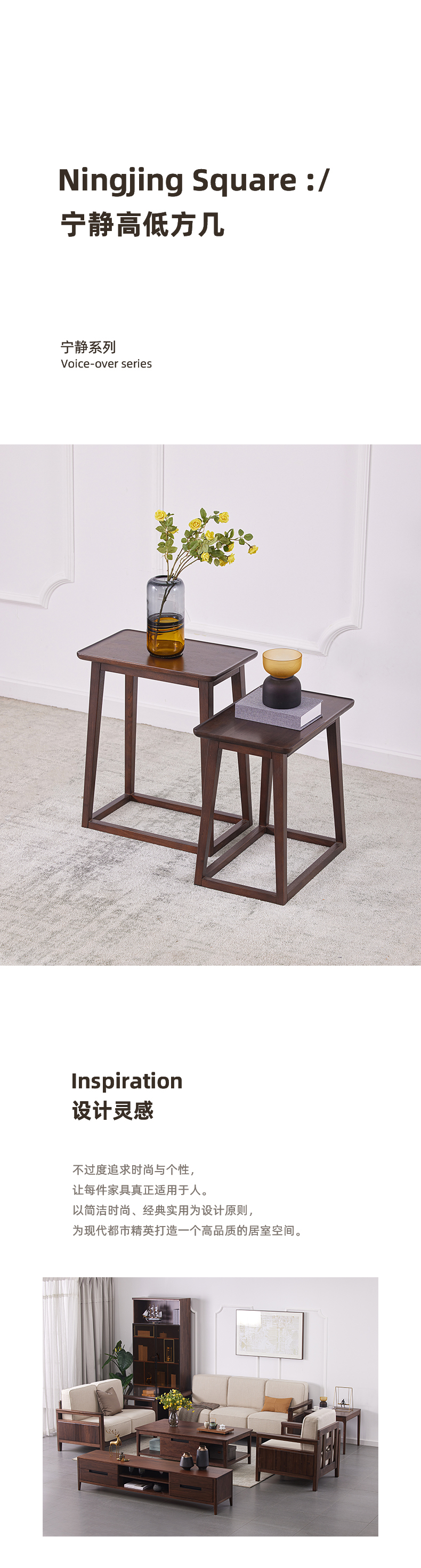 【现代实木风-NJT5312/13休闲几】现代实木风/现代简约/客厅/楸木/实木高低方几