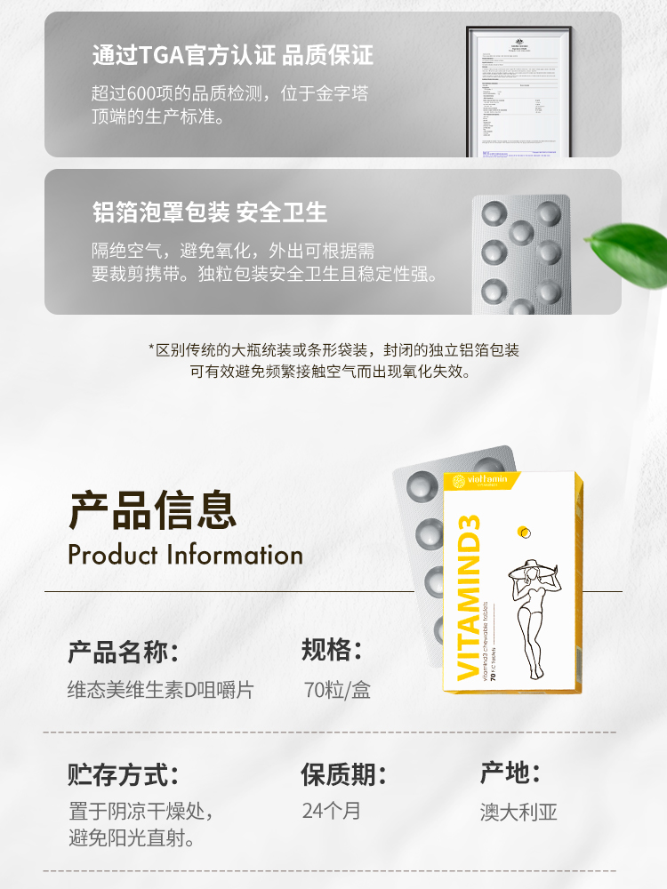 维态美姜黄素C3维生素D3成人促钙吸收1000IU咀嚼片剂儿童澳洲进口【72小时发货】