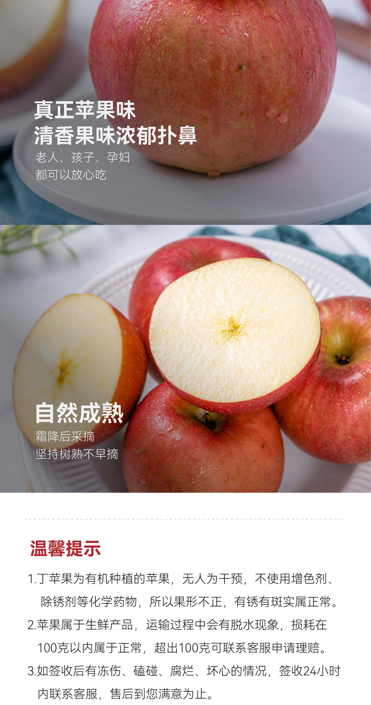 丁苹果有机红富士苹果 山东烟台有机种植15年当季新鲜水果【京东快递】
