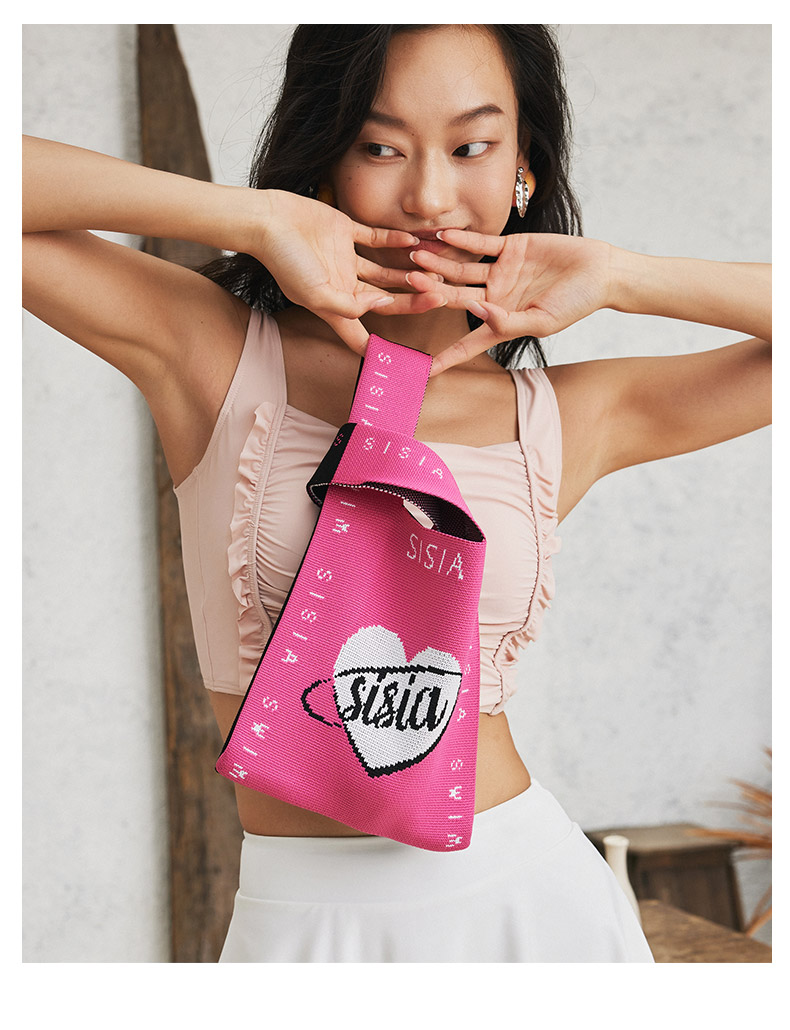sisia新款度假便携时尚百搭针织手腕包化妆品手机钥匙零钱收纳包51W04S1B