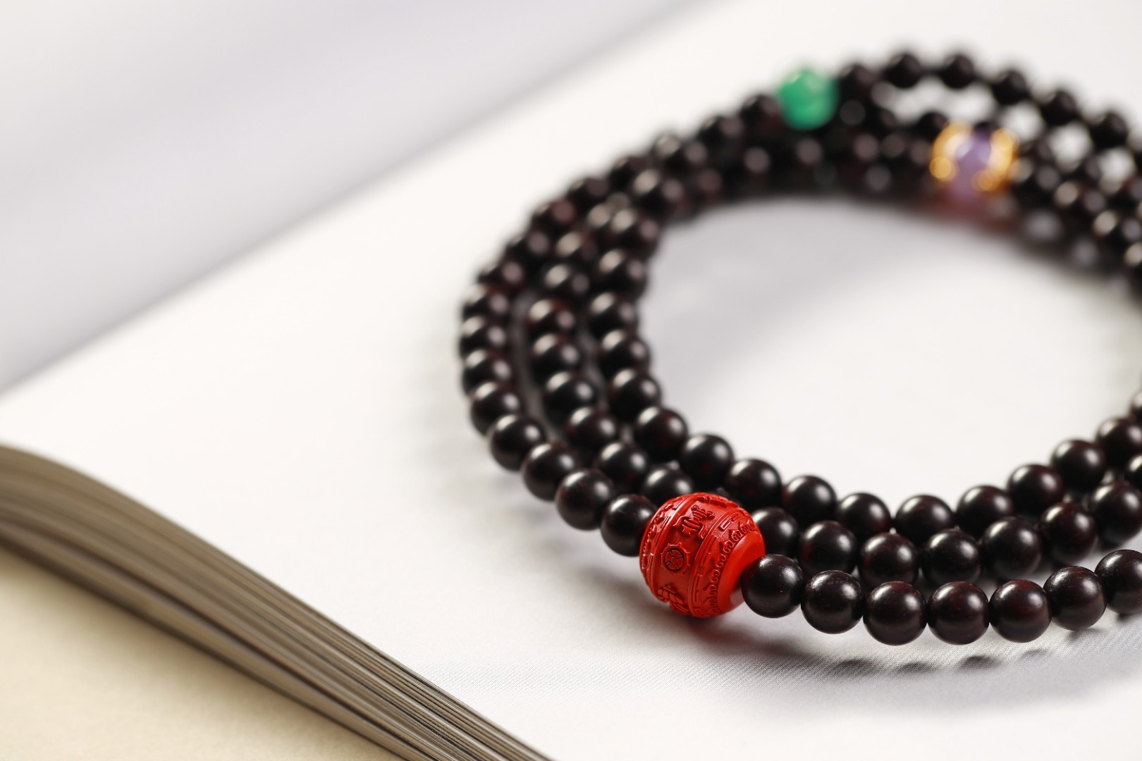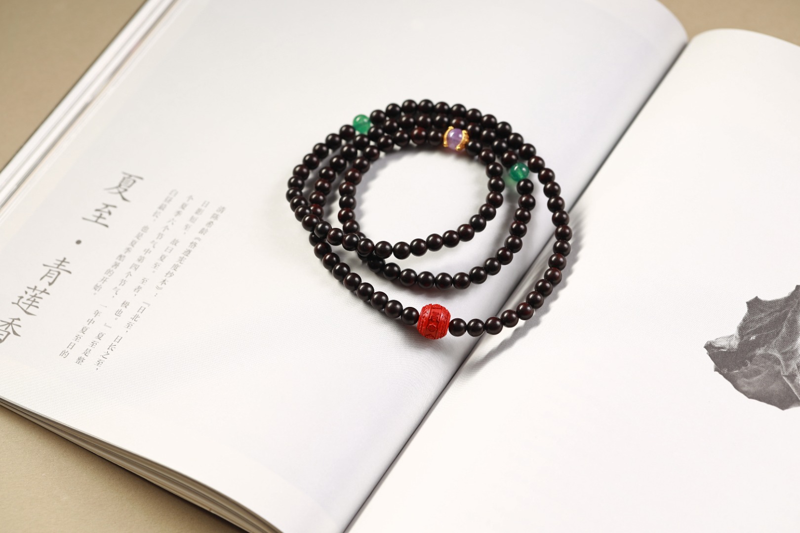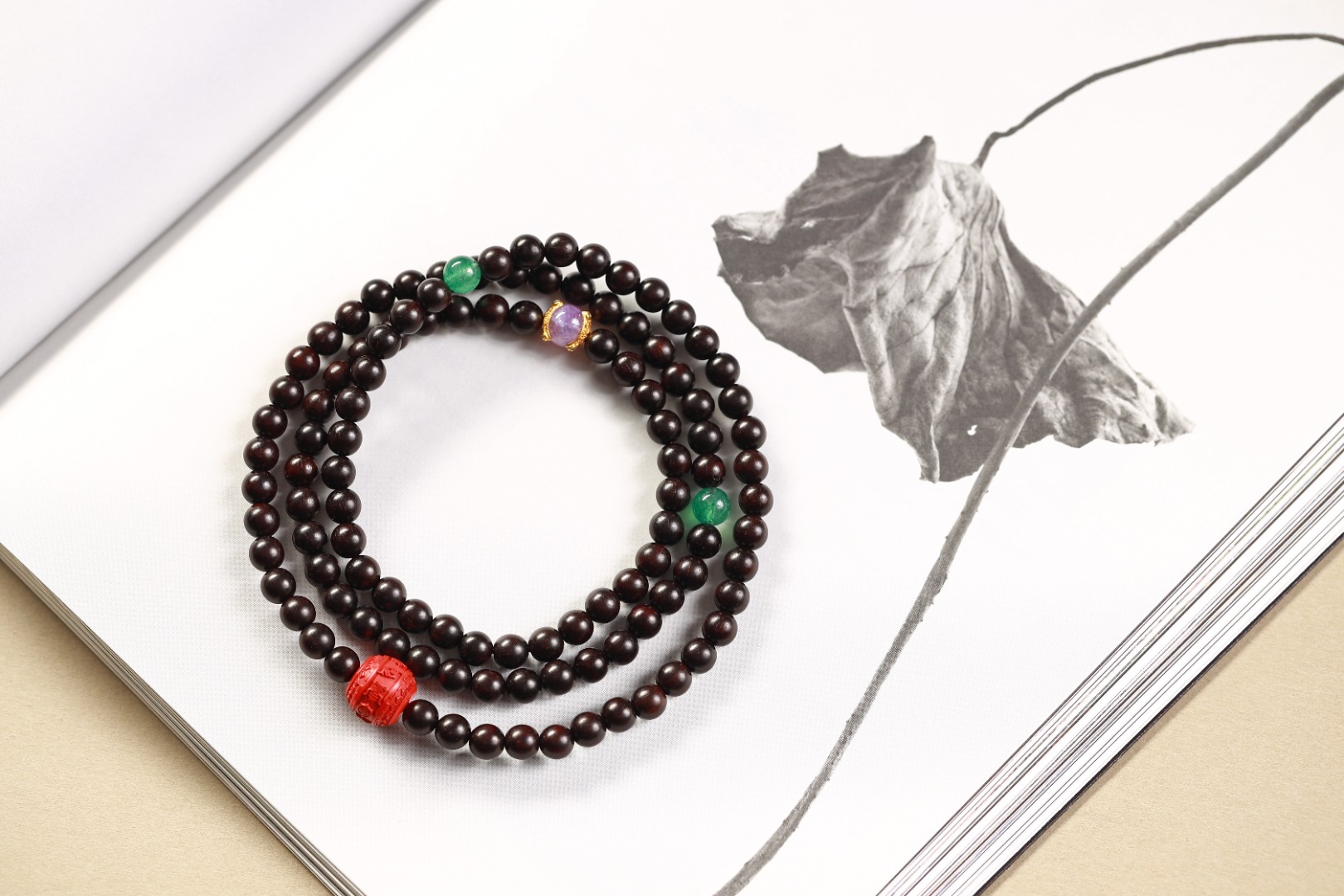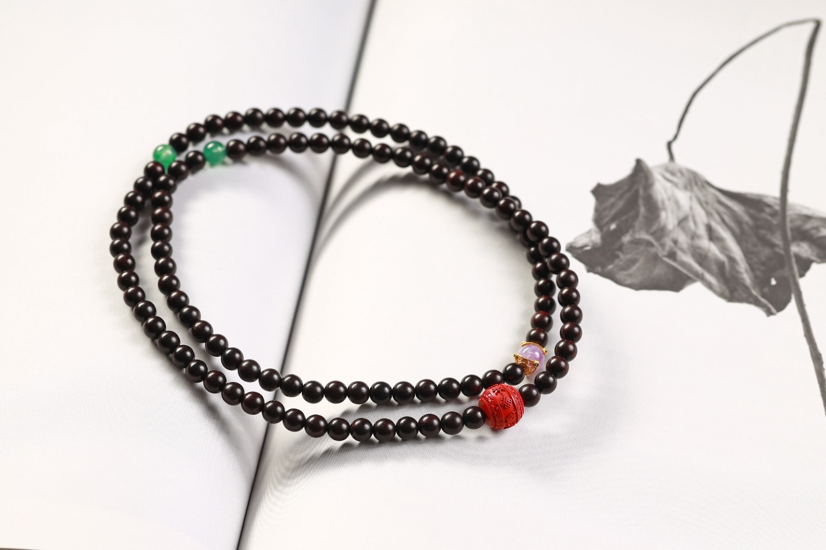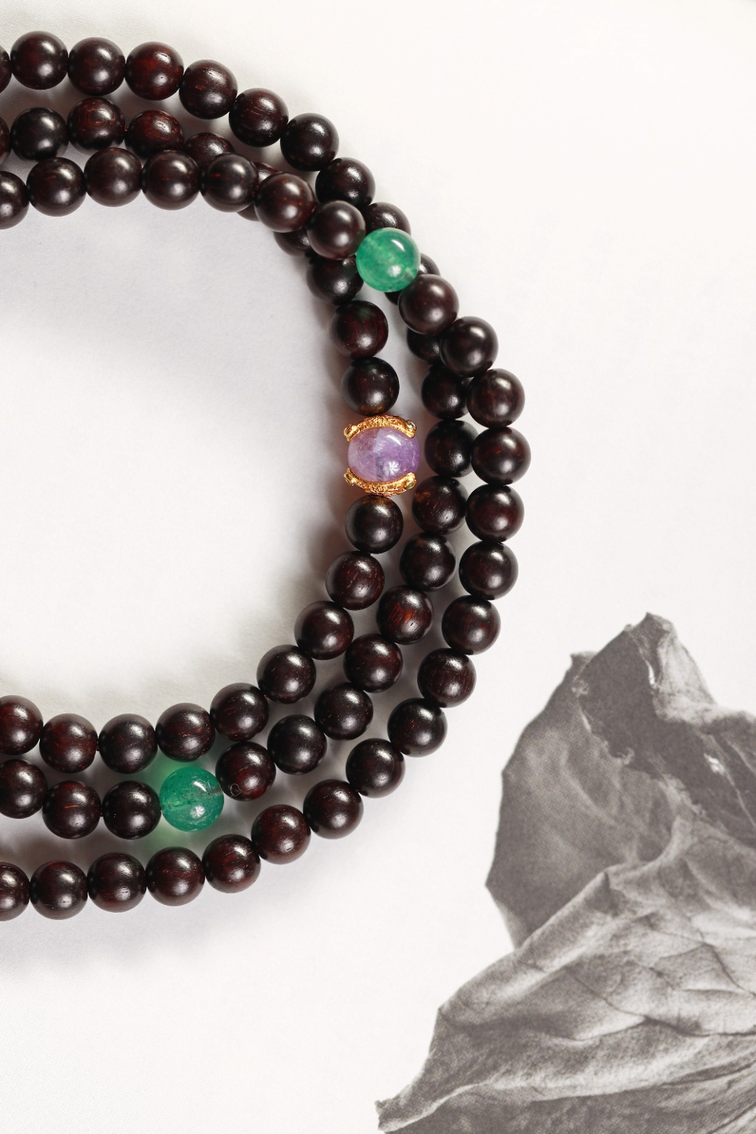 配件:PT紫檀/朱砂八吉祥铜珠/绿草莓晶/银镀金三角卷枝紫锂辉