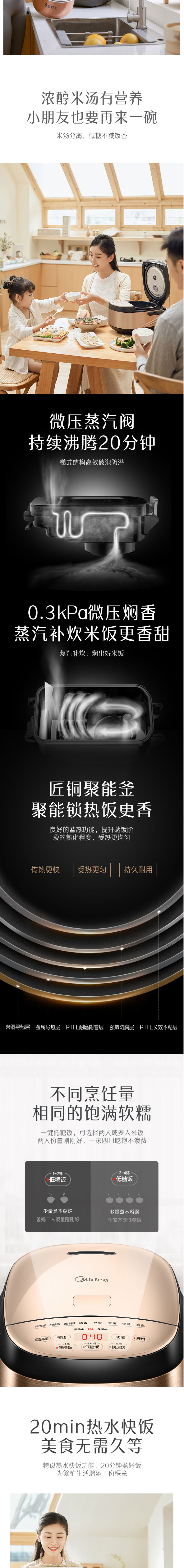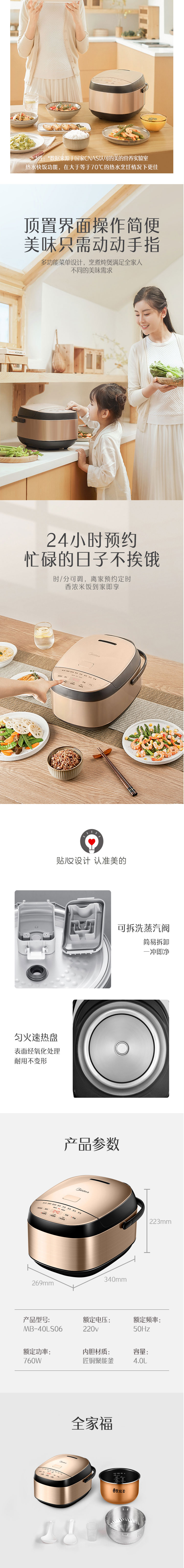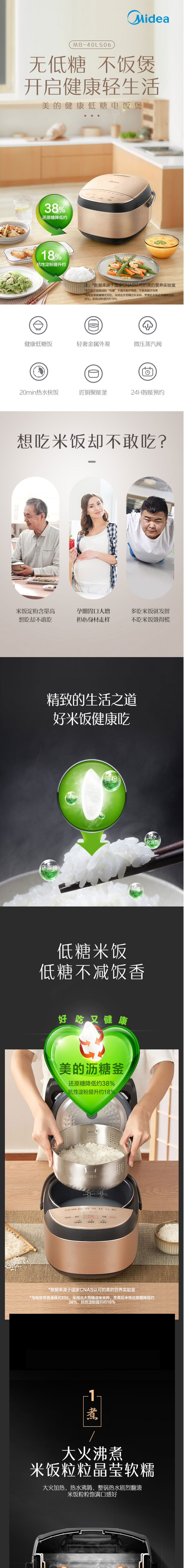 美的(Midea)低糖电饭煲智能电饭锅家用4L升多功能米汤分离电饭煲大容量24H智能预约蒸煮米饭锅 MB-40LS06(2-6人)