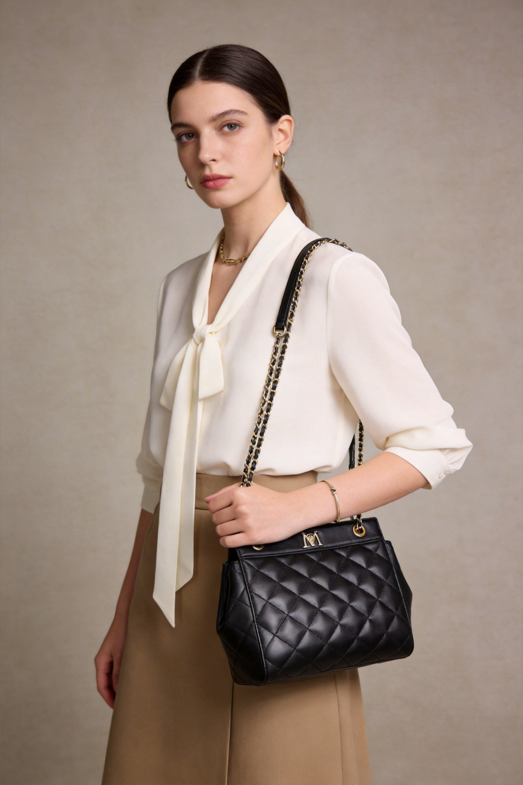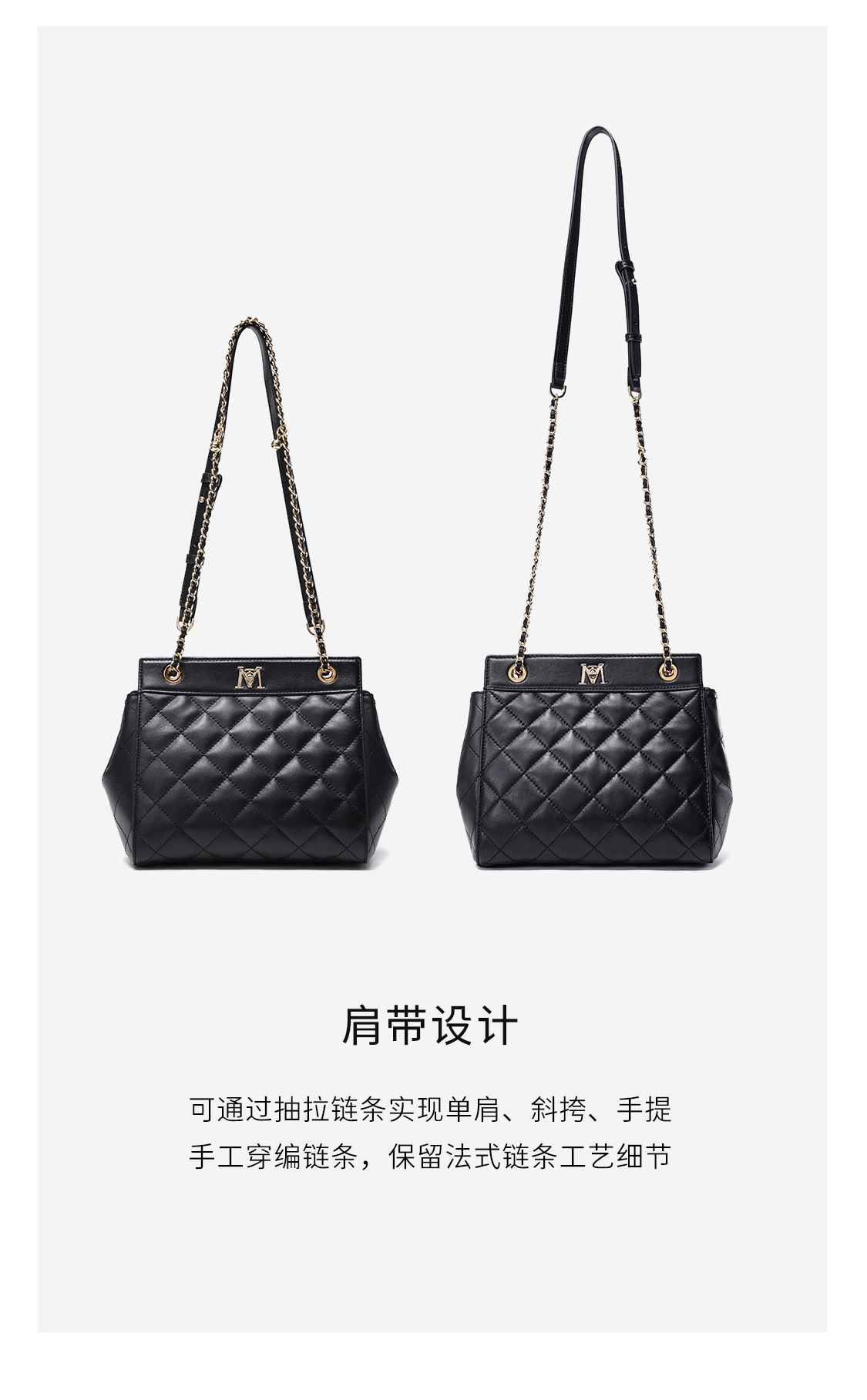 梦特娇女士真皮链条包轻奢羊皮单肩包休闲矜贵斜挎包可爱菱格包