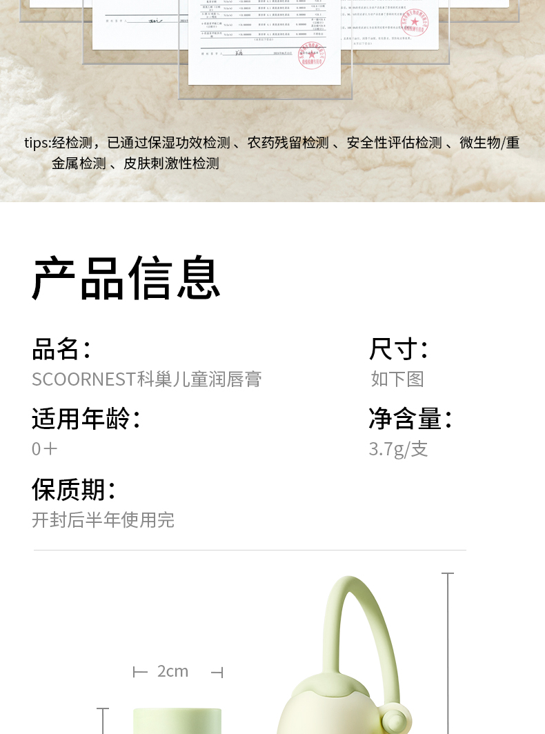 科巢婴幼儿童润唇膏女保湿滋润小女孩专用宝宝护唇膏秋冬男孩唇蜜