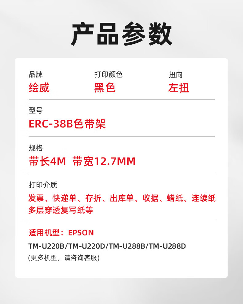 绘威ERC-38B色带架4支装 适用爱普生EPSON TM-U220B U220D U288B U288D针式打印机色带含芯【黑色】