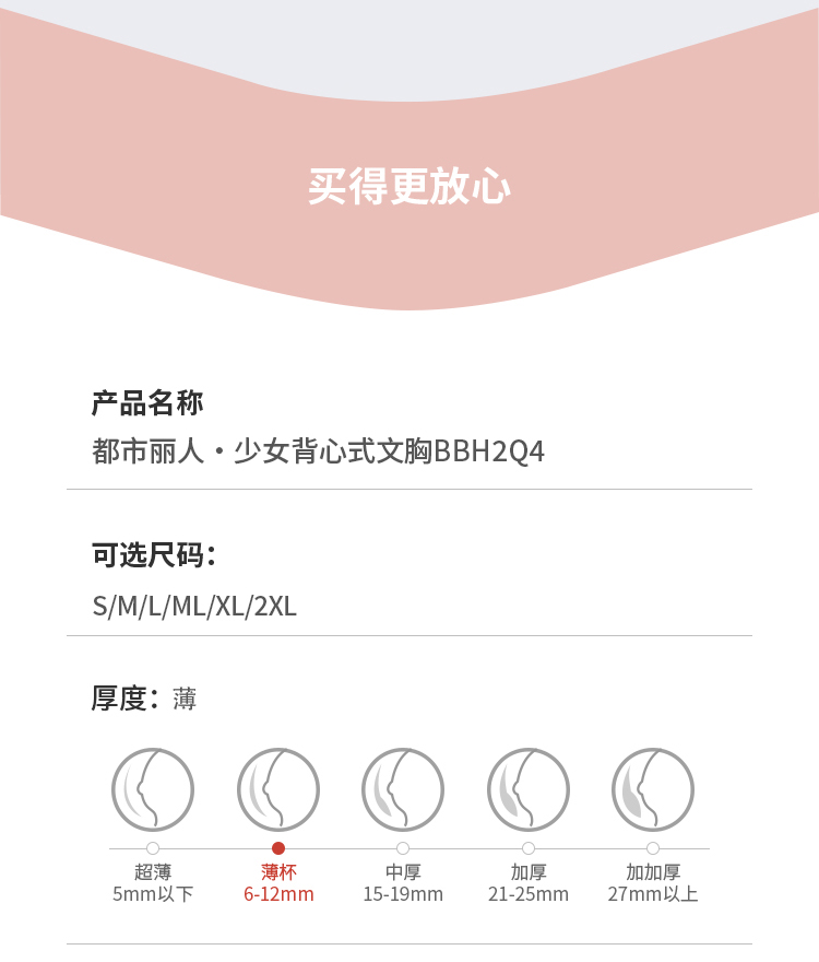 都市丽人内衣薄泳布少女优选二阶无钢圈少女文胸BBH2Q4