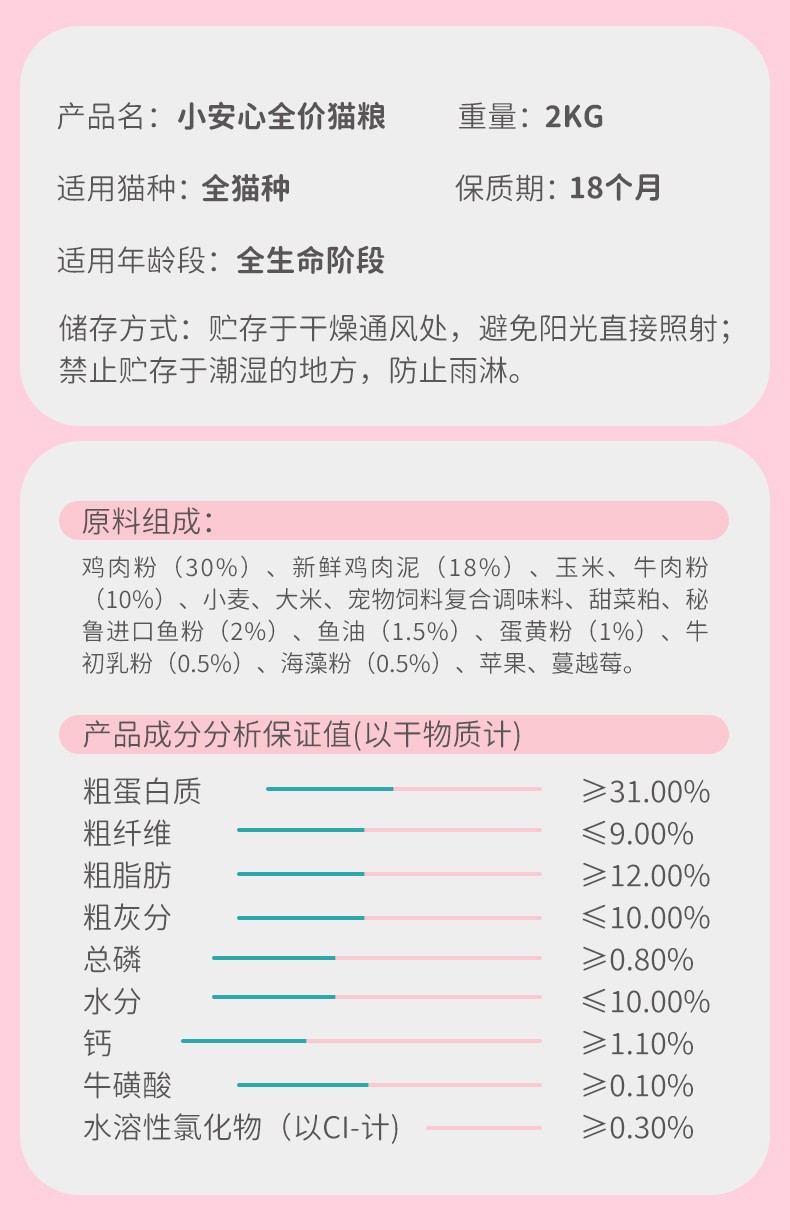 小安心通用猫粮2kg 鲜肉全价猫粮