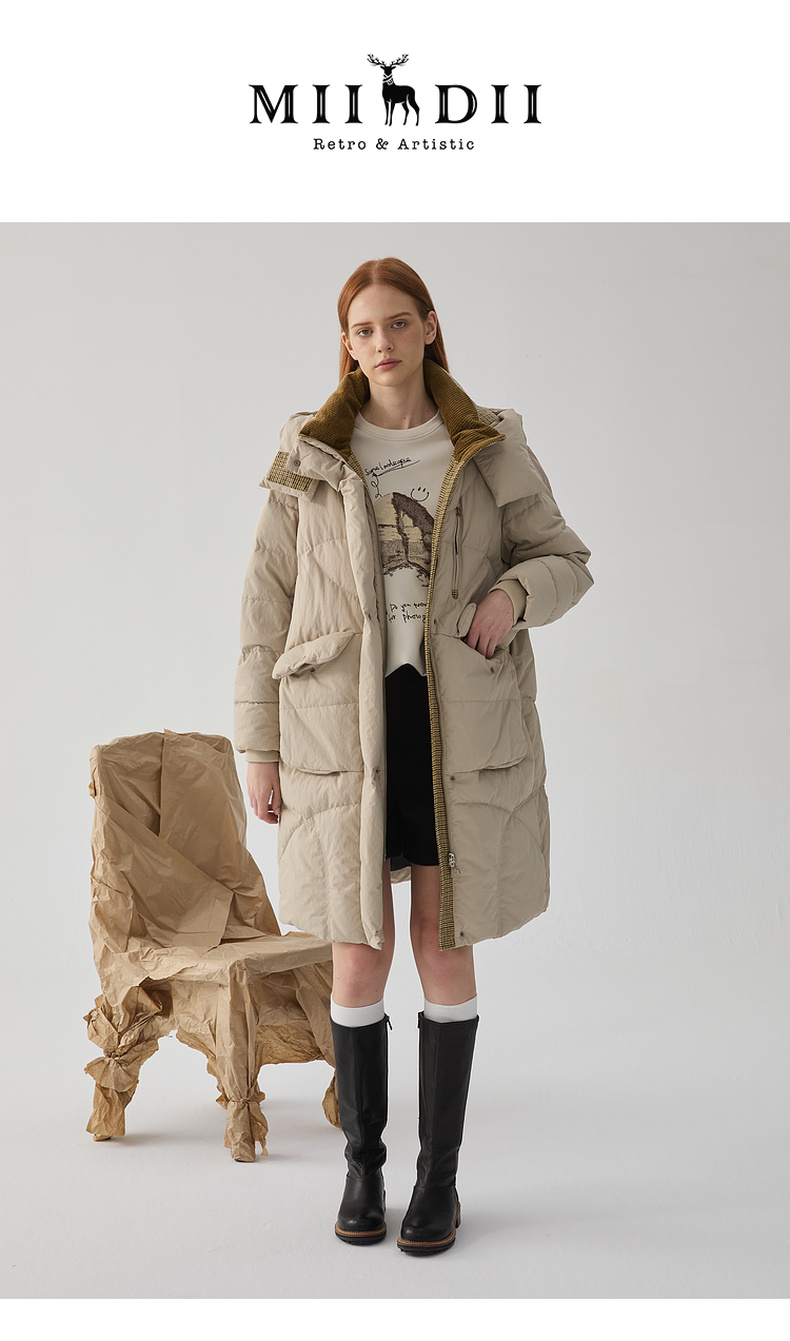 谜底长款羽绒服女2024冬新品设计感加厚保暖鸭绒面包服244MY1525