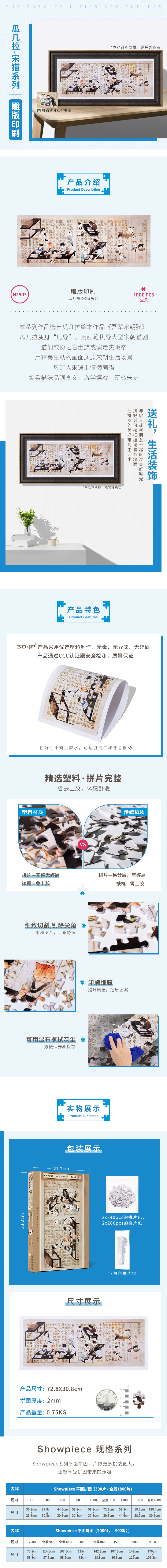 【折扣商品 不退不换】1000片 全景平面拼图 塑料拼图 H2503 全景长版拼图-瓜几拉- 宋猫系列- 雕版印刷