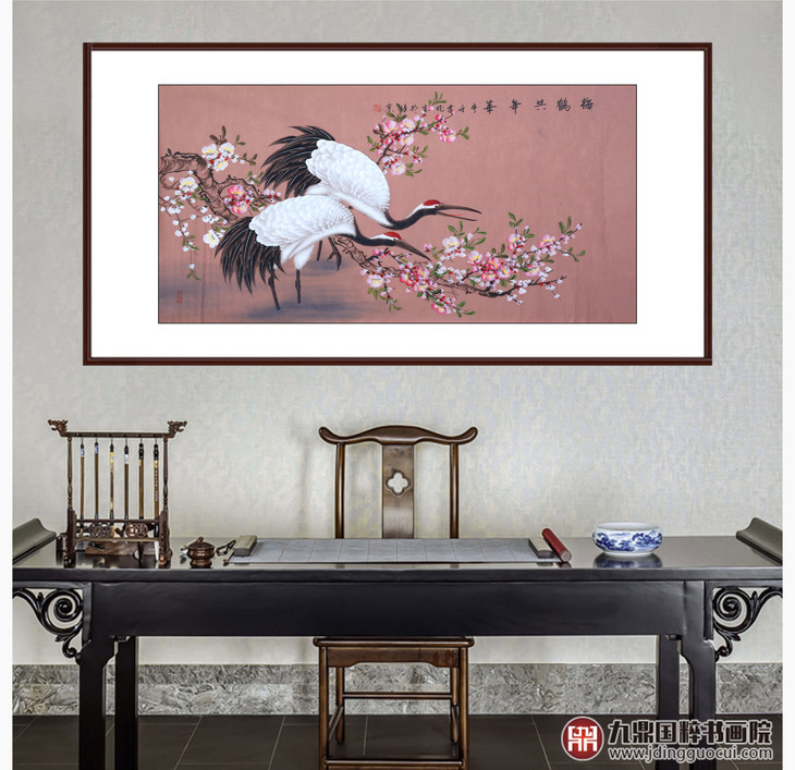 李兆生《梅鹤共年华》68*138cm 花鸟横幅作品 茶室/书房挂画