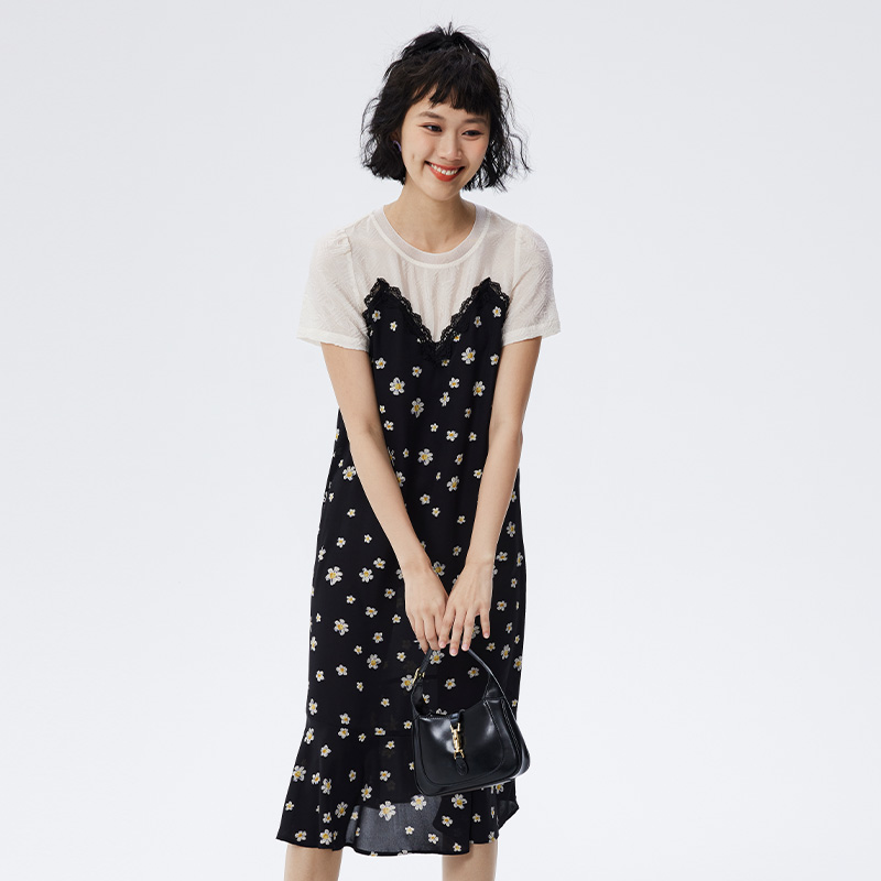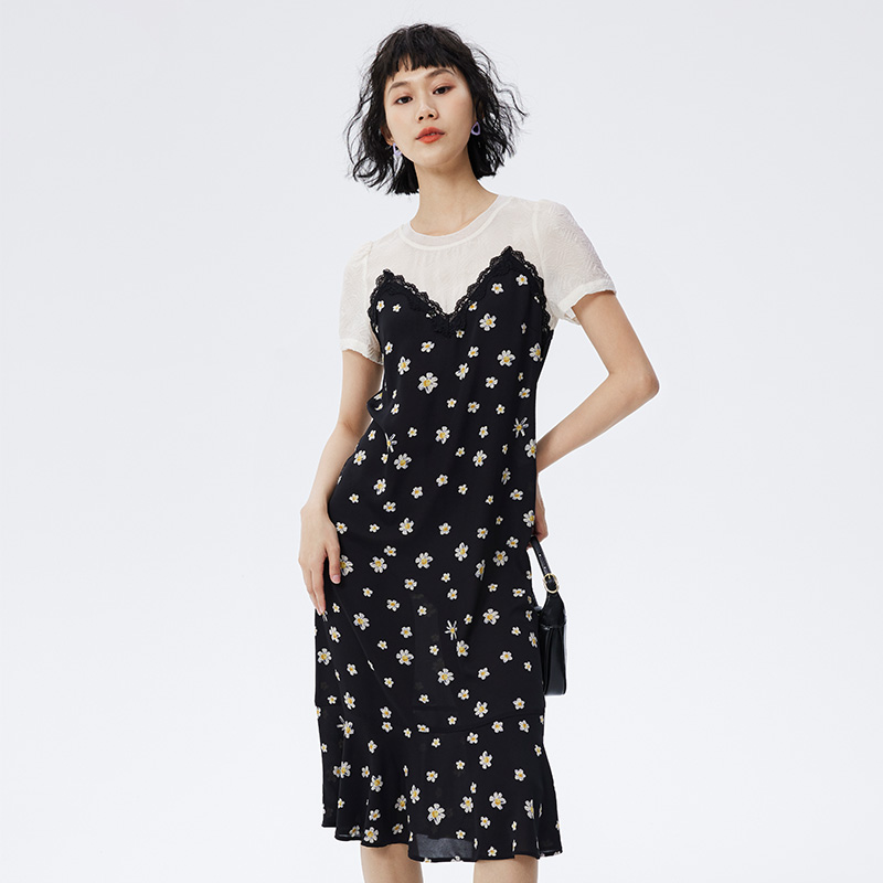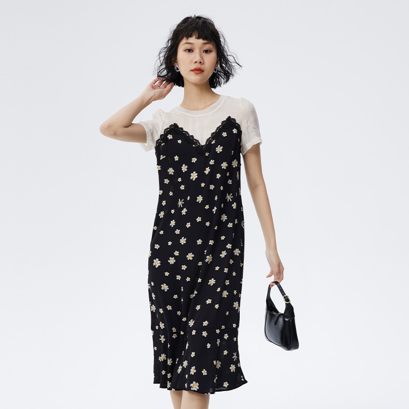 水云间22年夏日常周末气质拼接碎花连衣裙12220798