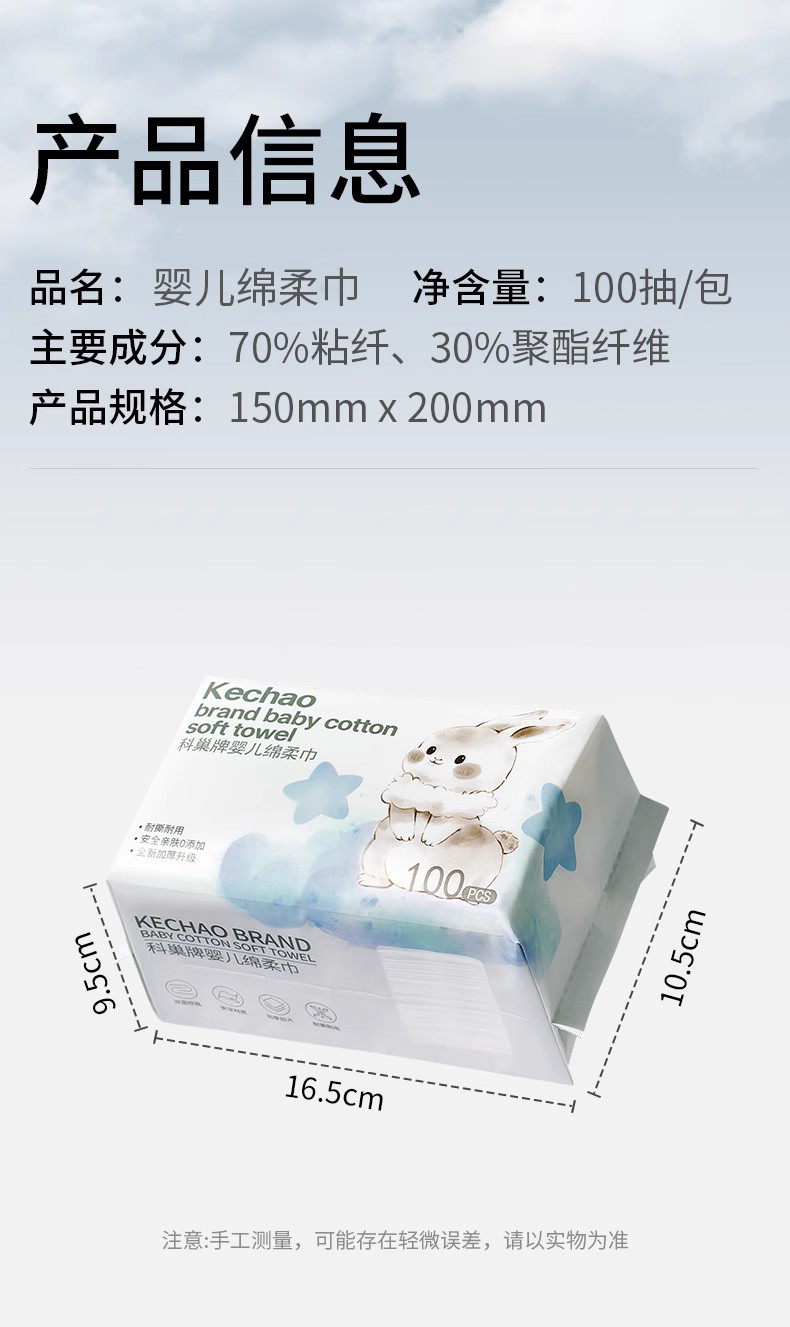 科巢婴儿干湿两用新生幼儿非棉柔巾湿纸巾宝宝专用洗脸绵柔巾6包