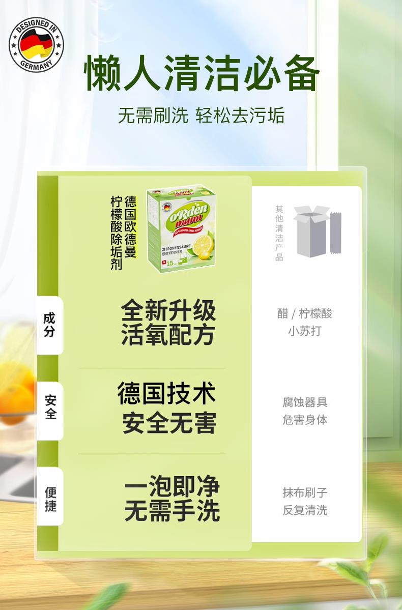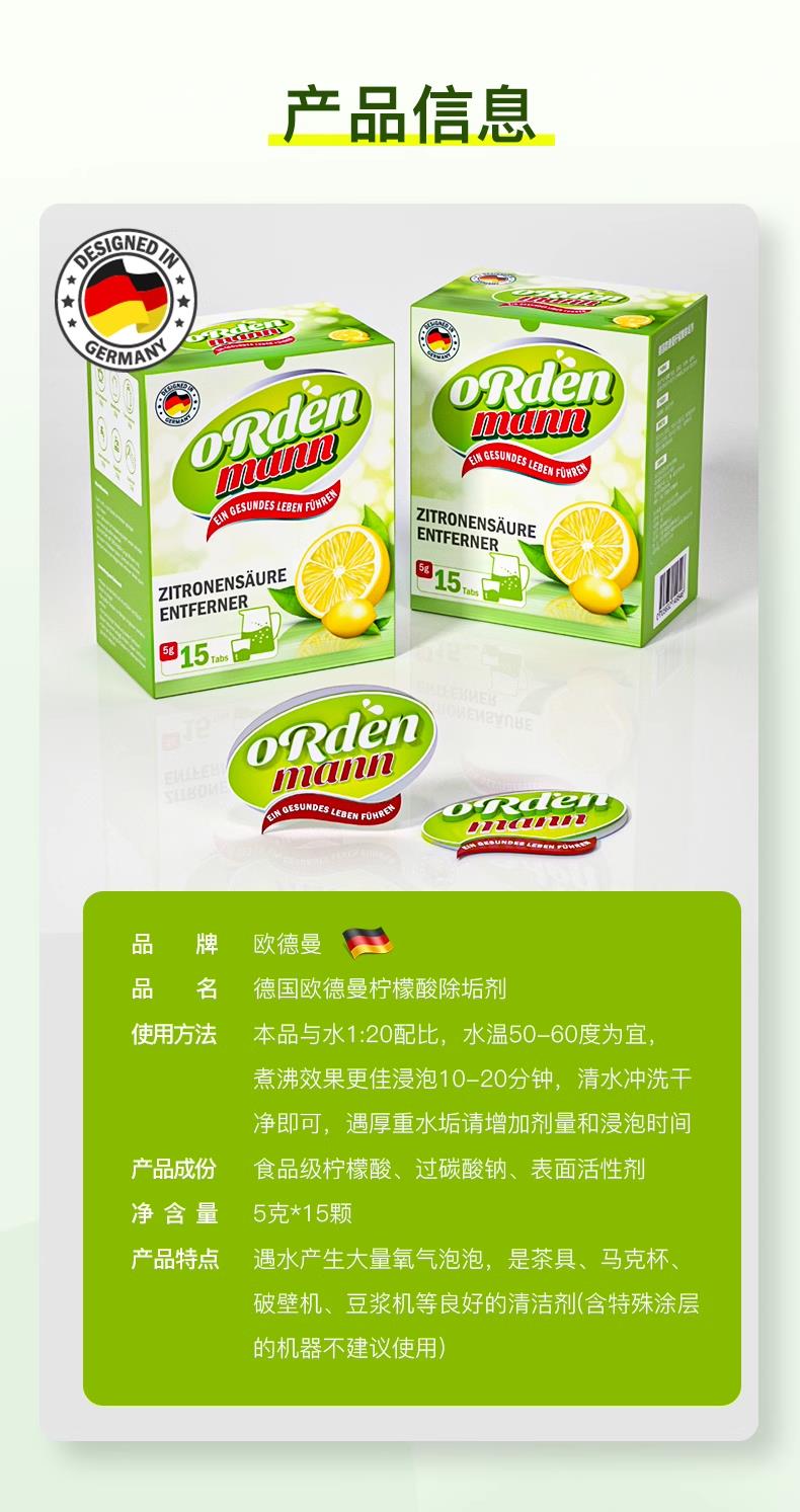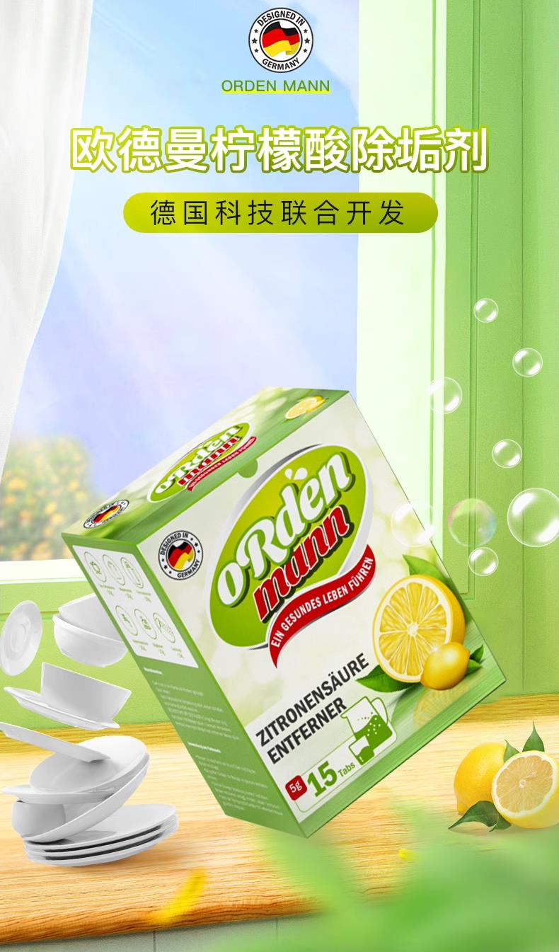 【中欧班列】【厨房除垢推荐】德国欧德曼柠檬酸除垢剂5克*15片/盒