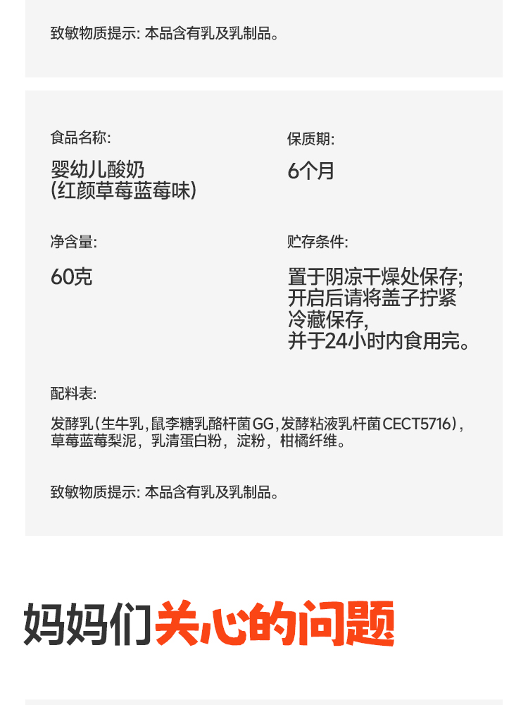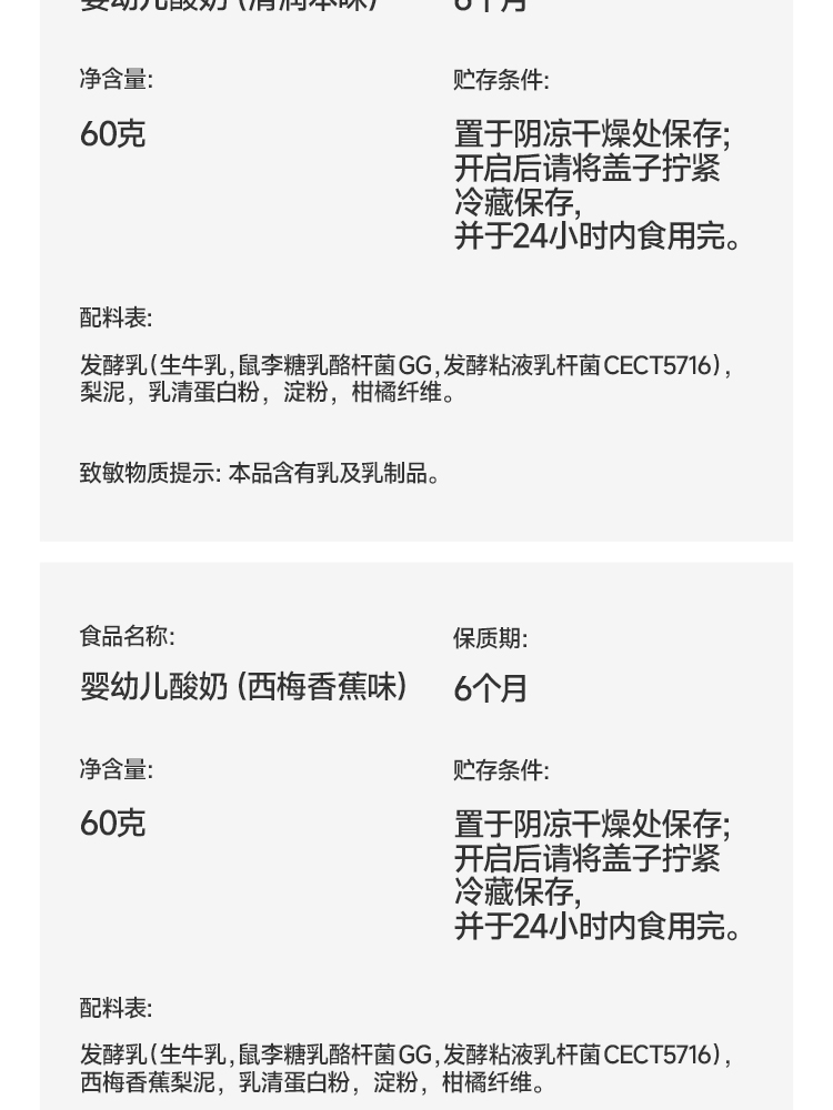 【主辅食】婴幼儿酸奶(红颜草莓蓝莓味/西梅香蕉味/清润本味)60g
